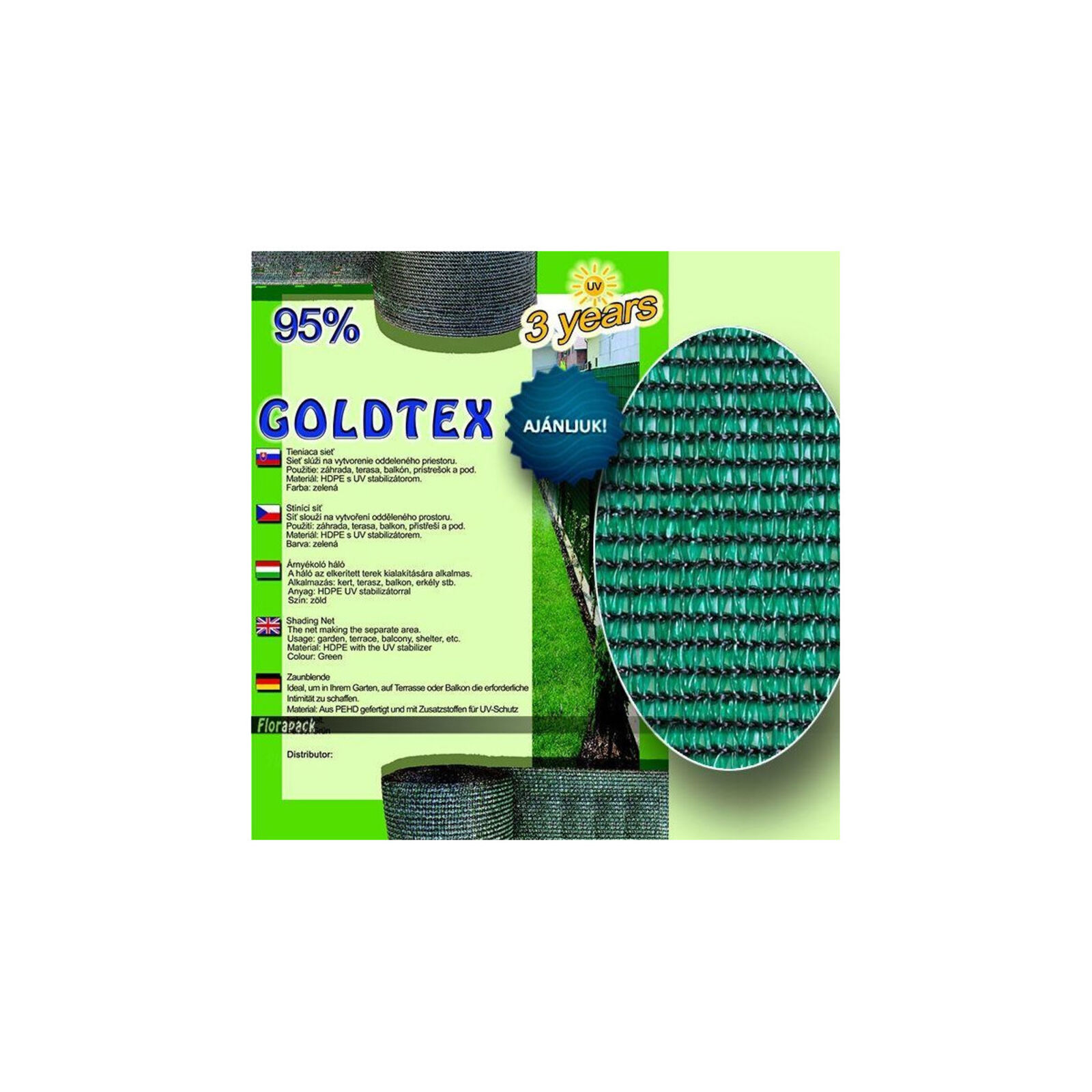 Árnyékoló háló GOLDTEX 230 1,5*10m zöld 95 százalékos