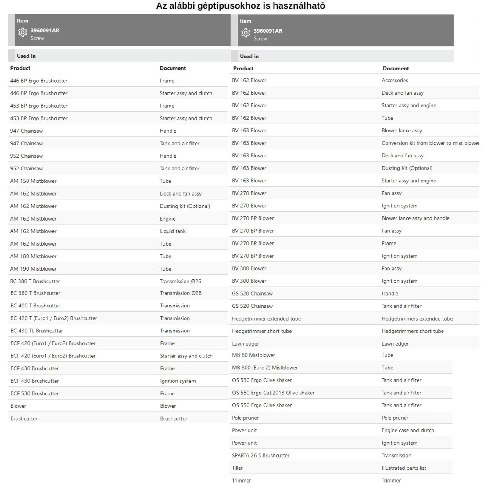 Tipusok: Fűrészek, Boz ótvágók, Permetezők, Lombfúvó, Multi Mate