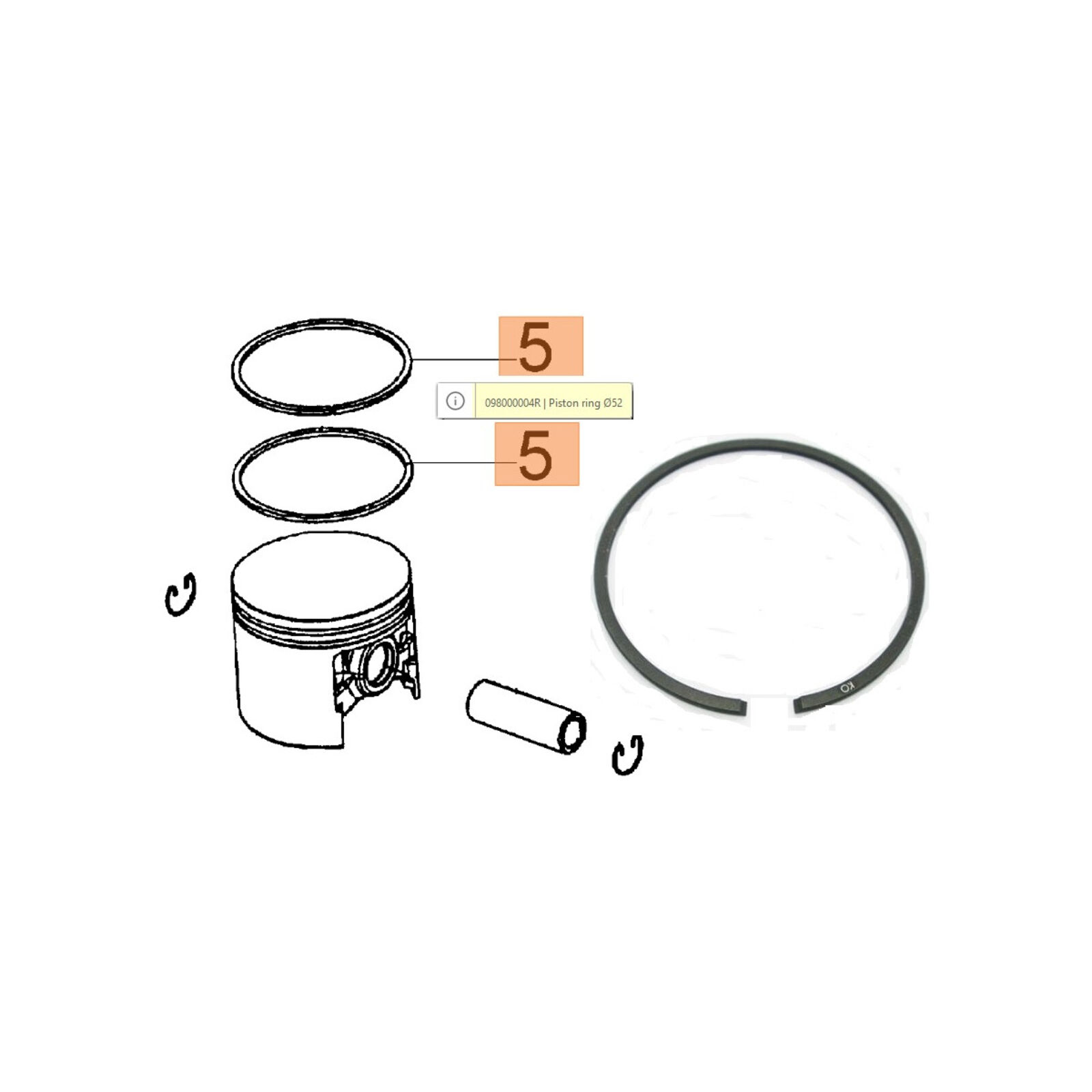 Dugattyú gyűrű 52 mm - oldalt stiftelt