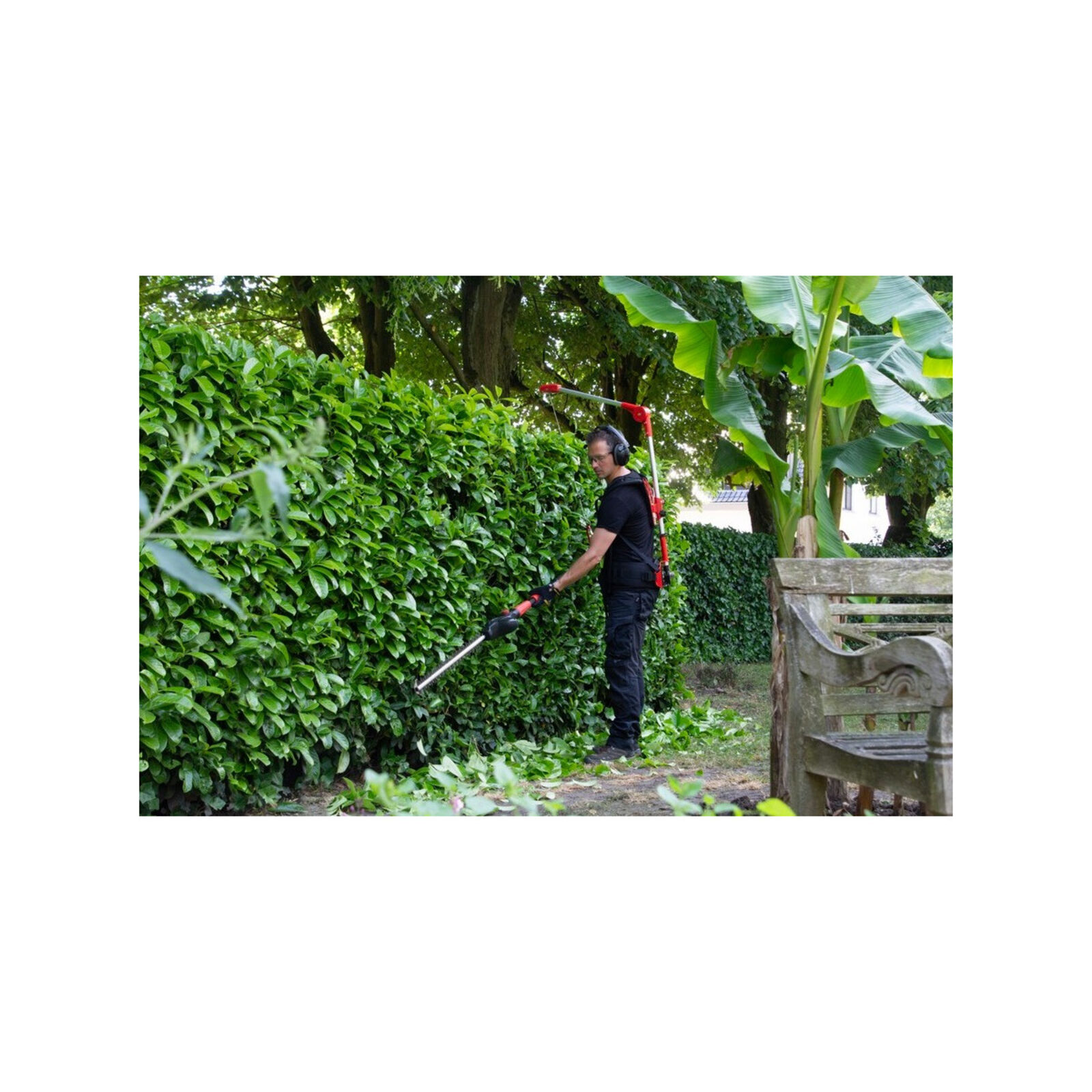 A heveder nem csak sövényvágókhoz használható, hanem más, 4,5 és 8 kg közötti súlyú hordozható kerti szerszámokhoz is, a láncfűrészek kivételével. A szerszámok egy nagy karabinerrel rögzíthetők a hevederhez. Akkumulátoros sövényvágókhoz, valamint más, kétkezes biztonságot nyújtó kerti szerszámokhoz a mellékelt rögzítőzsinór használata ajánlott.