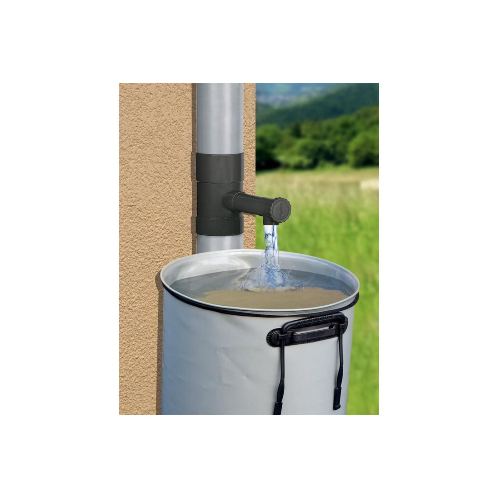 A kollektor lehetővé teszi az esővíz külső tartályba/hordóba történő összegyűjtését. Erős és strapabíró anyaga hosszú évekig használható. A kollektor 100 mm átmérőjű PVC és fém vezetékekhez használható. Tartalmaz egy szelepet vízáramlás szabályozással.