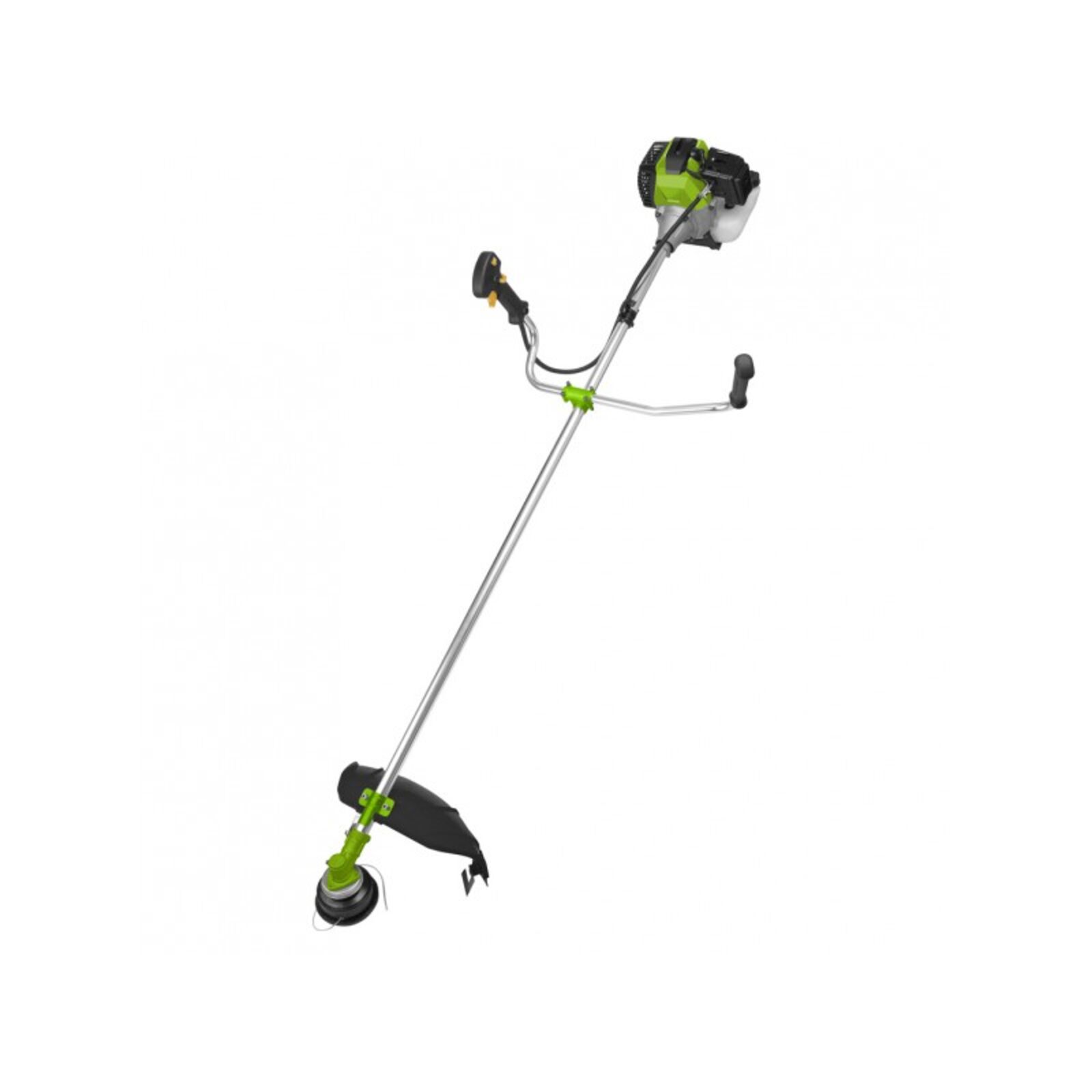 2 ütem motor 43 cc / 1,4 kW állítható hordszíj félautomata nyírófej vágási szélesség: 420 mm autómata damiladagoló damil átmér: 2,4 mm 3 ágú fém pengével, 25 cm átmér önsúly: 5 kg üzemanyag keverési arány: 1:25