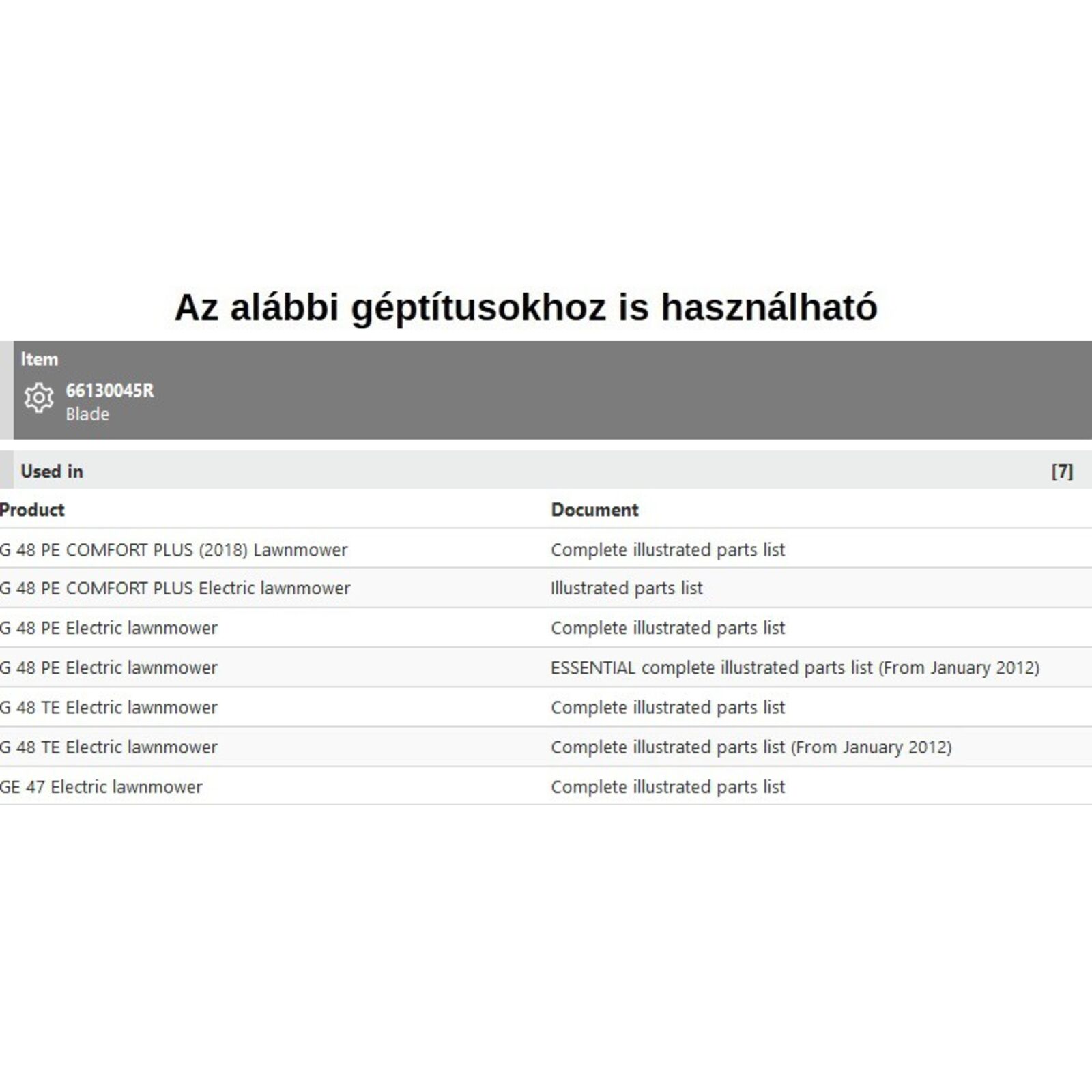 Fűnyírókés mulcsozós G48 PE-TE, GE 47 TE