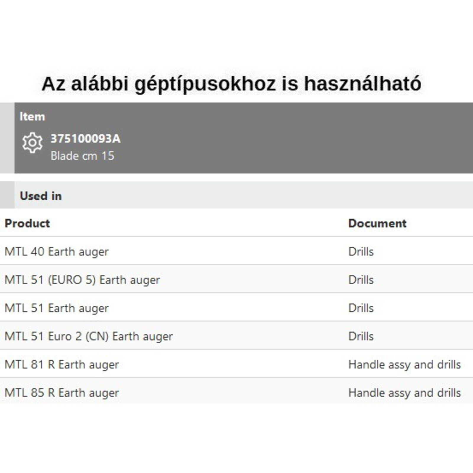 Fúrószár kés MTL 40,51,81,85 - 15cm