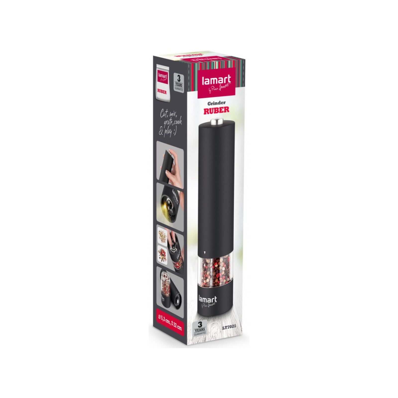 Fűszerörlő elemes LT7021 fekete Lamart Ruber acél/üveg/akril