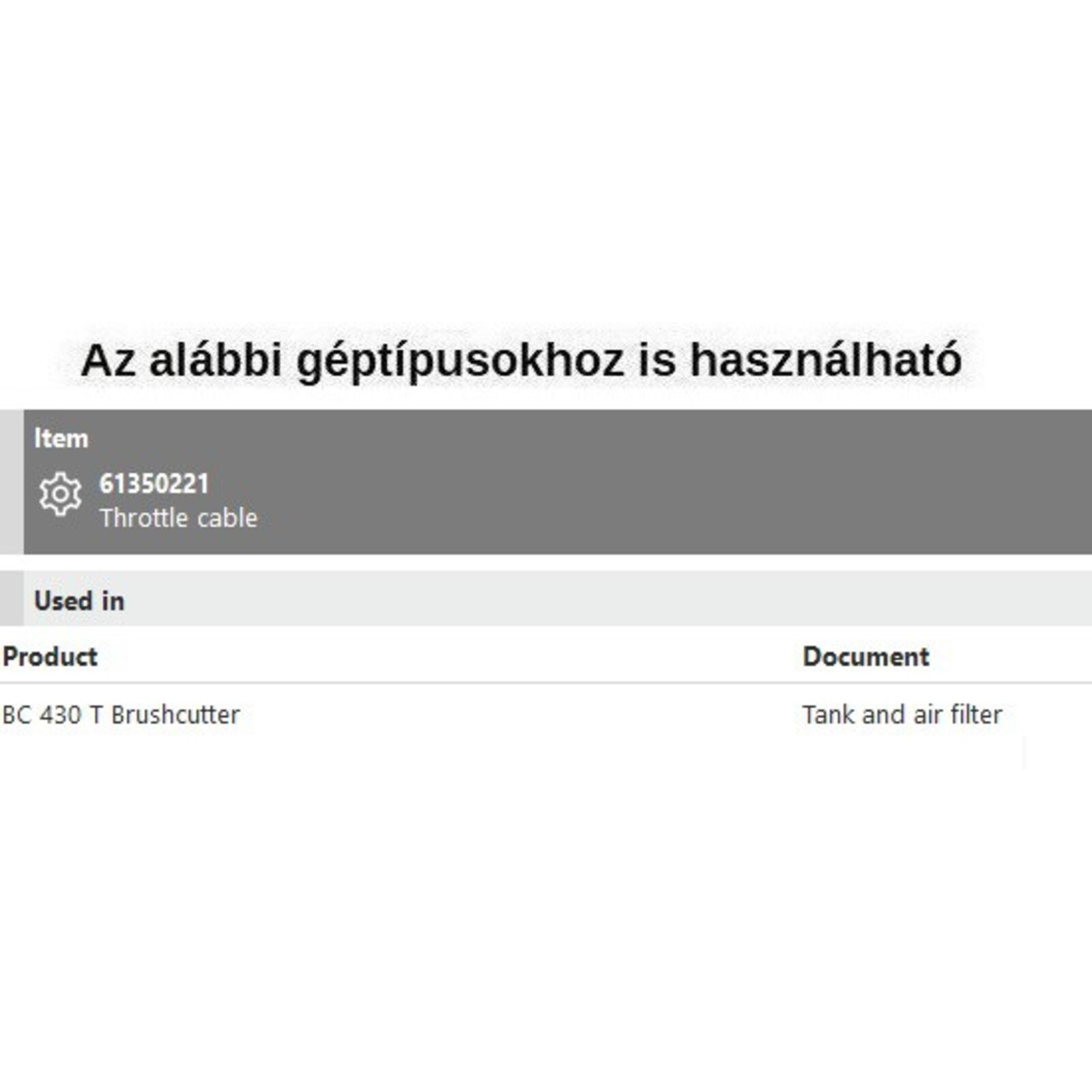 Gázbowden gázbovden BC 430 T (rövidebb)