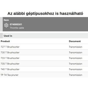Gázbowden gázbovden rugóval 727, 730, 735, 740