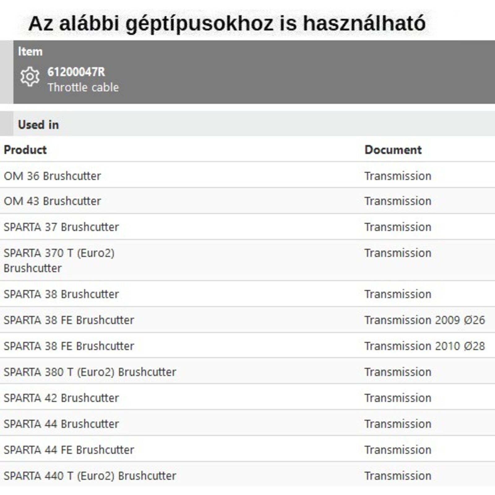 Gázbowden gázbovden Sparta 37-370-380- 42- 44- 440