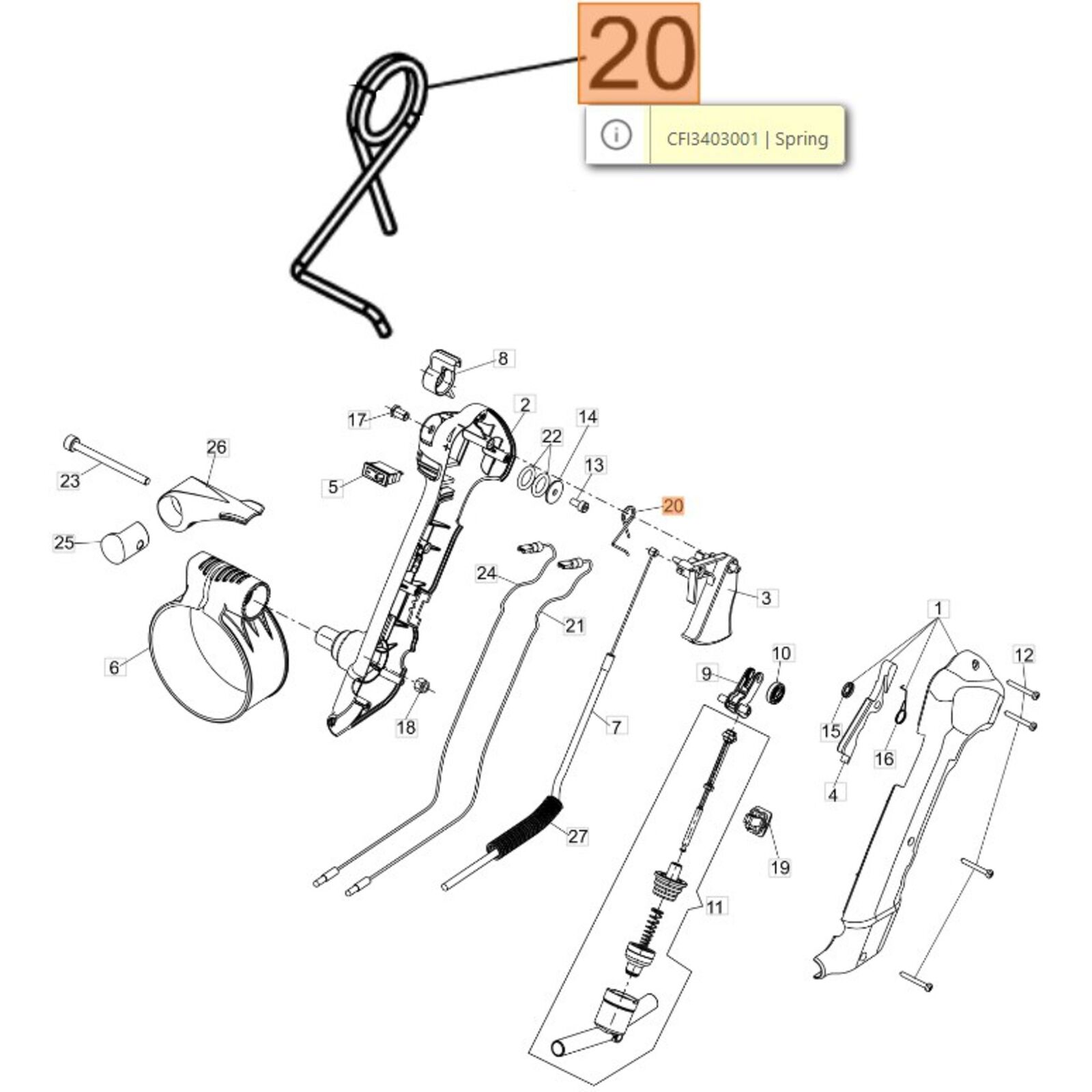 Gázkar rugó BV 900, BV 901, MB 90, MB 900,