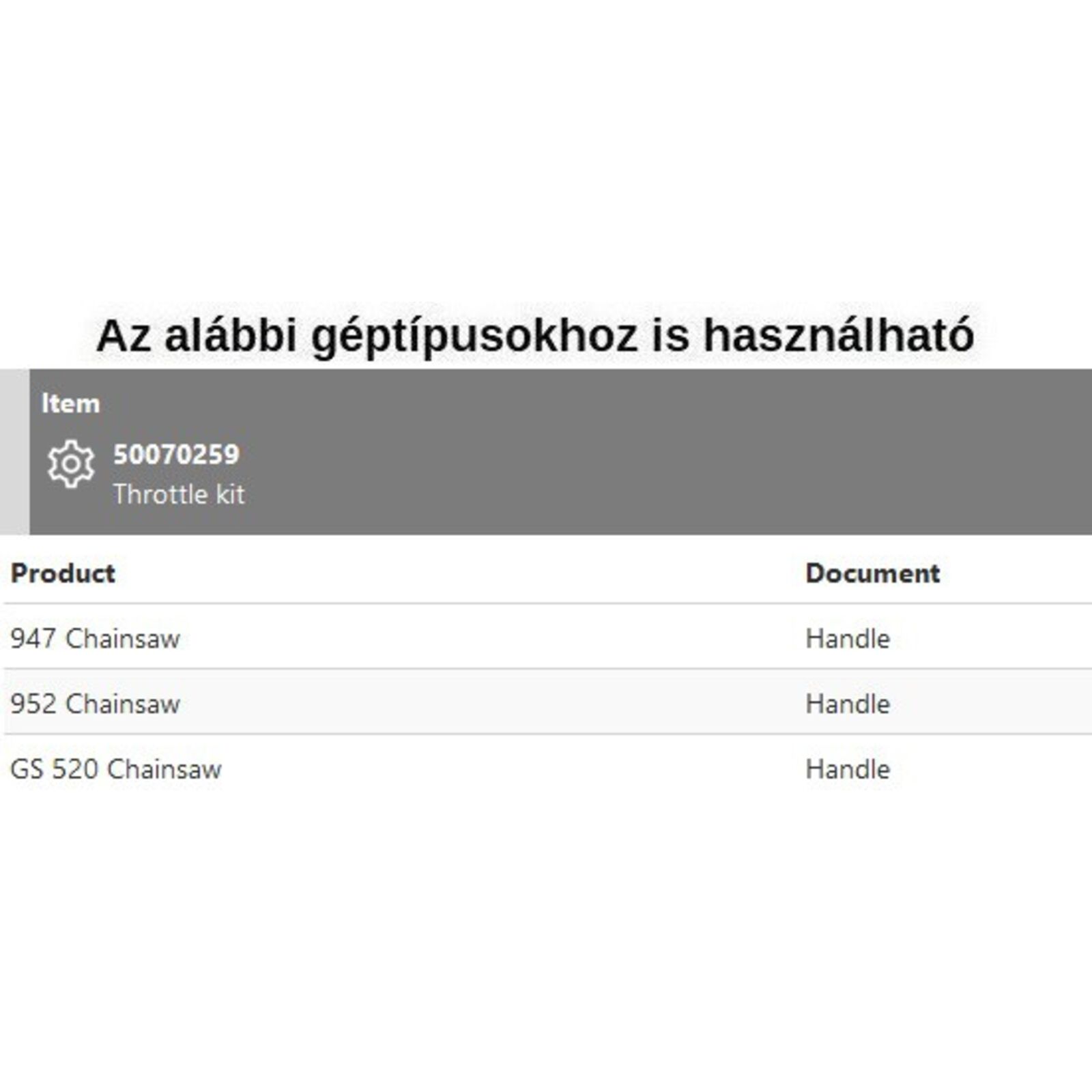 Gázkar szett 947, 952,GS 520