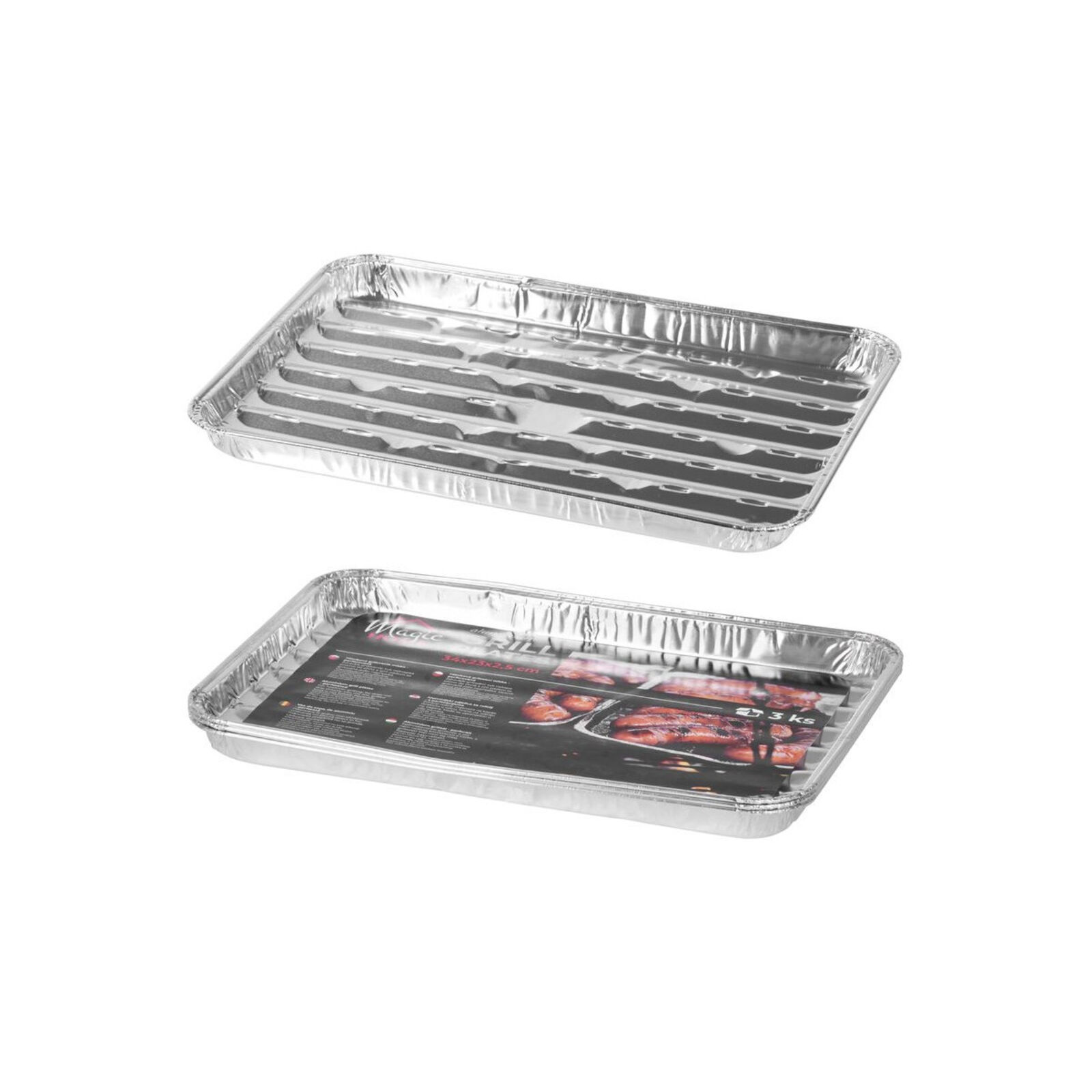Grilltál lapos MagicHome 34 x 23 x 2,5 cm, 3 db, téglalap alakú, átlyukasztó, ALU