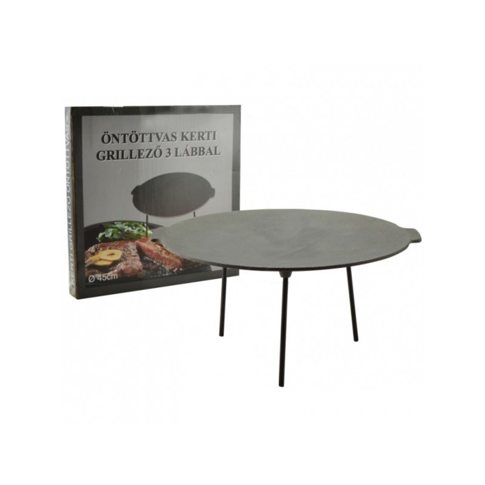 Anyaga: natúr öntött vas Mérete: 23 cm magas, 45 cm átmérőjű Súlya: 5,4 kg Használható: szabad tűzön Tisztítása: Minden használat után meleg mosószeres vízzel mossa el, alaposan szárítsa meg és kenje be zsírral a rozsdásodás elkerülése érdekében Használata: első használat előtt távolítsa el a rozsdásodást gátló védőviaszt (kiégetéssel). Ehhez a tárcsát forró vízben, semleges folyékony mosogatószerrel mossa el, alaposan törölje szárazra. Ezután kenje ki zsírral vagy szalonnával és alaposan hevítse fel.