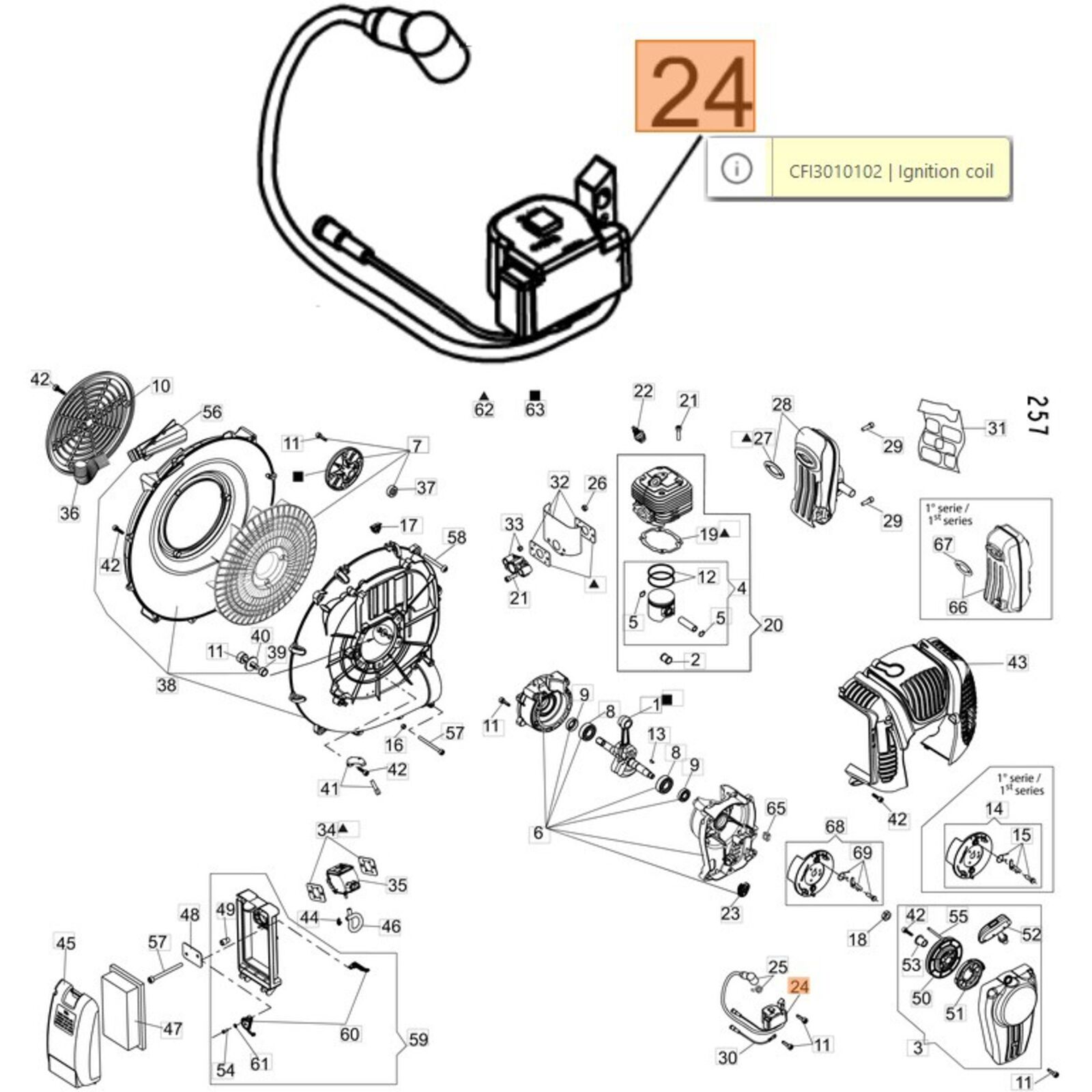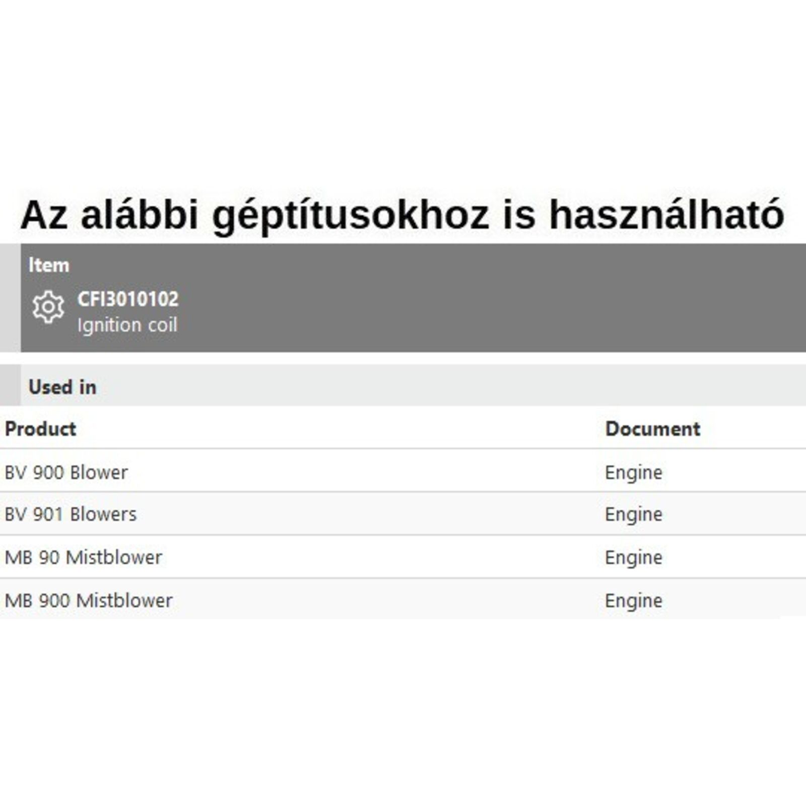 Gyújtótekercs kábelekkel BV 900, BV 901, MB 90,MB 900 - CFI3010103