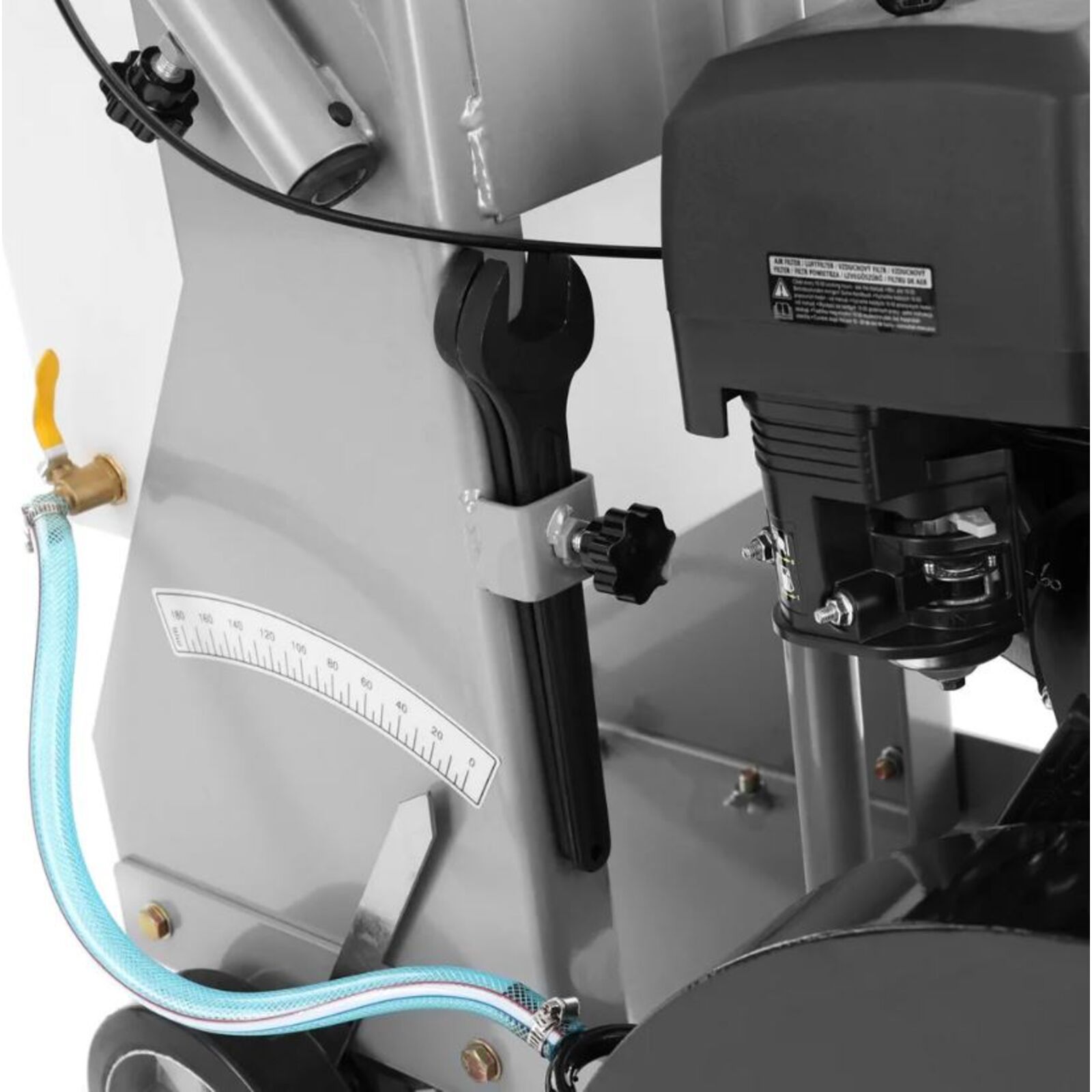 Beton- és asztfaltvágó 389 ccm űrtartalommal . Lehetőség nedves és száraz vágásra. Korongátmérő 450 mm / 18". Vízhűtés, víztartály térfogata 35 liter. Víztartállyal és vezetőkerékkel együtt szállítjuk. Max. vágási mélység 14 cm. Fém váz. Tömeg 113 kg.