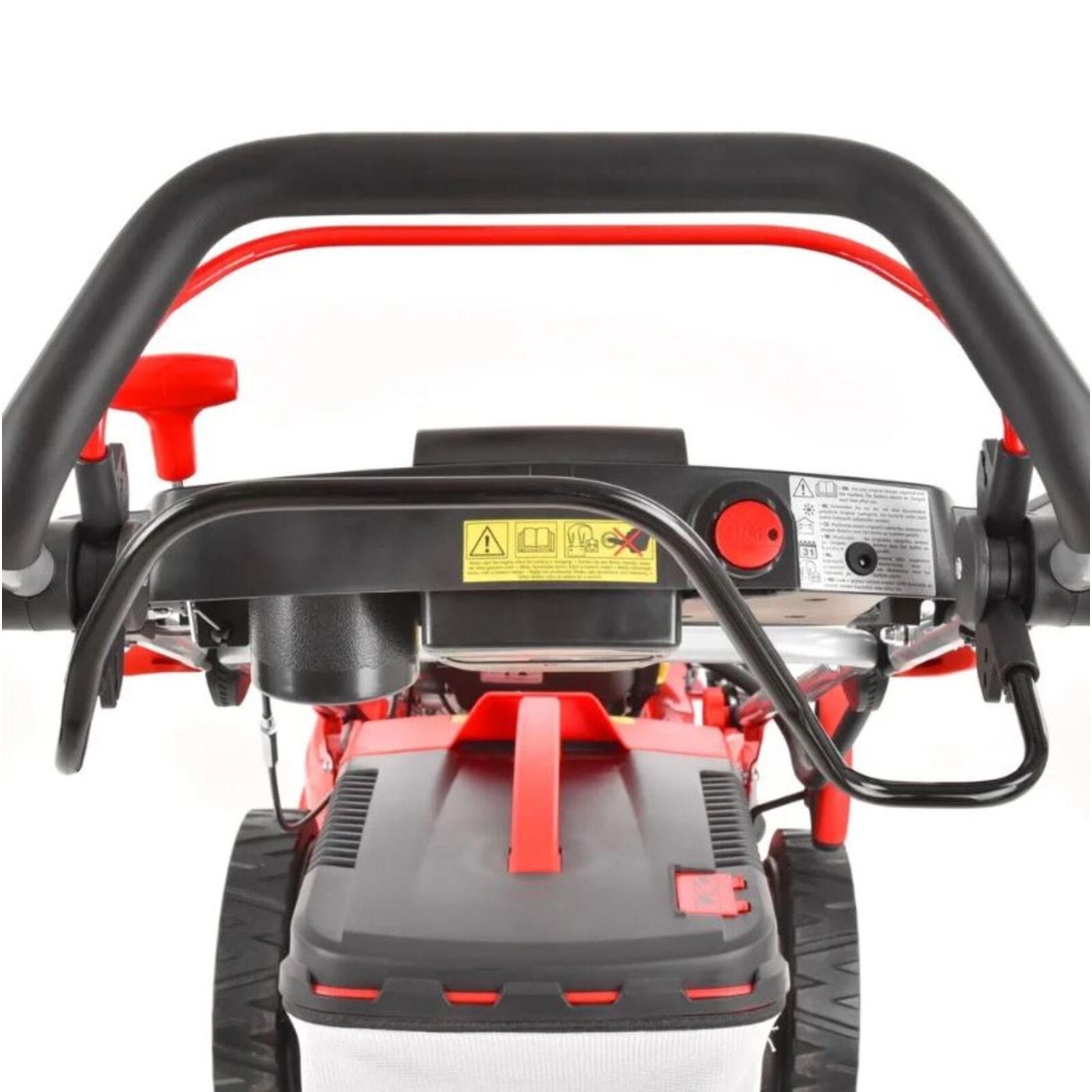 A fűnyíró beindítása történhet az elektromos indítóval, vagy a klasszikus berántóval is. Az elektromos indítás a fogantyún található indítógomb lenyomásával történik. Az indítást 12 V-os akkumulátor segíti, ami a fogantyú paneljében található. Így mindig jól hozzá lehet férni, és a fűnyíró tartozéka az akkumulátor töltő is, amit közvetlenül a fogantyún található, így az akkumulátort úgy lehet tölteni, hogy nem szükséges kivenni a fűnyíróból. A fűnyírót természetesen klasszikus berántással is be lehet indítani.