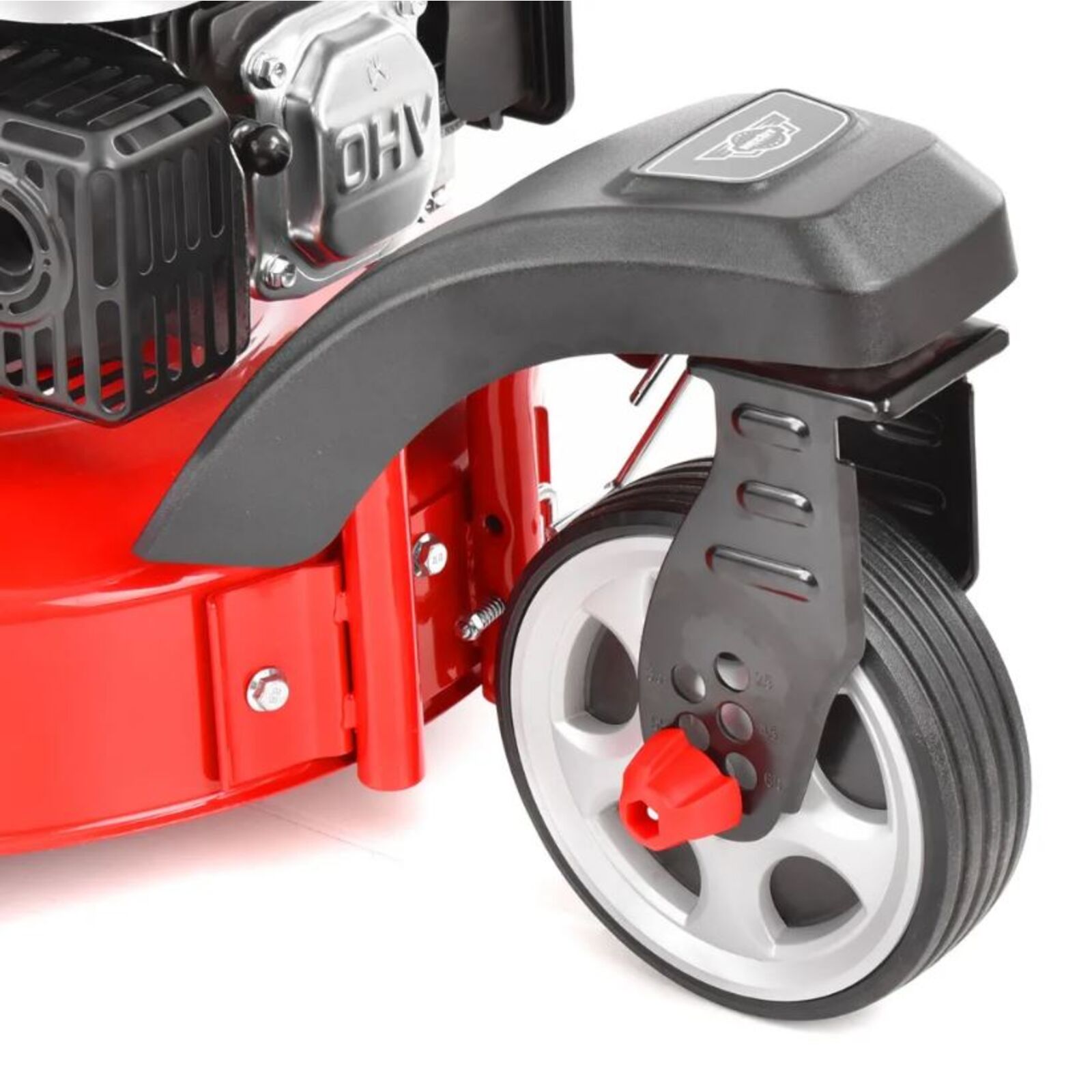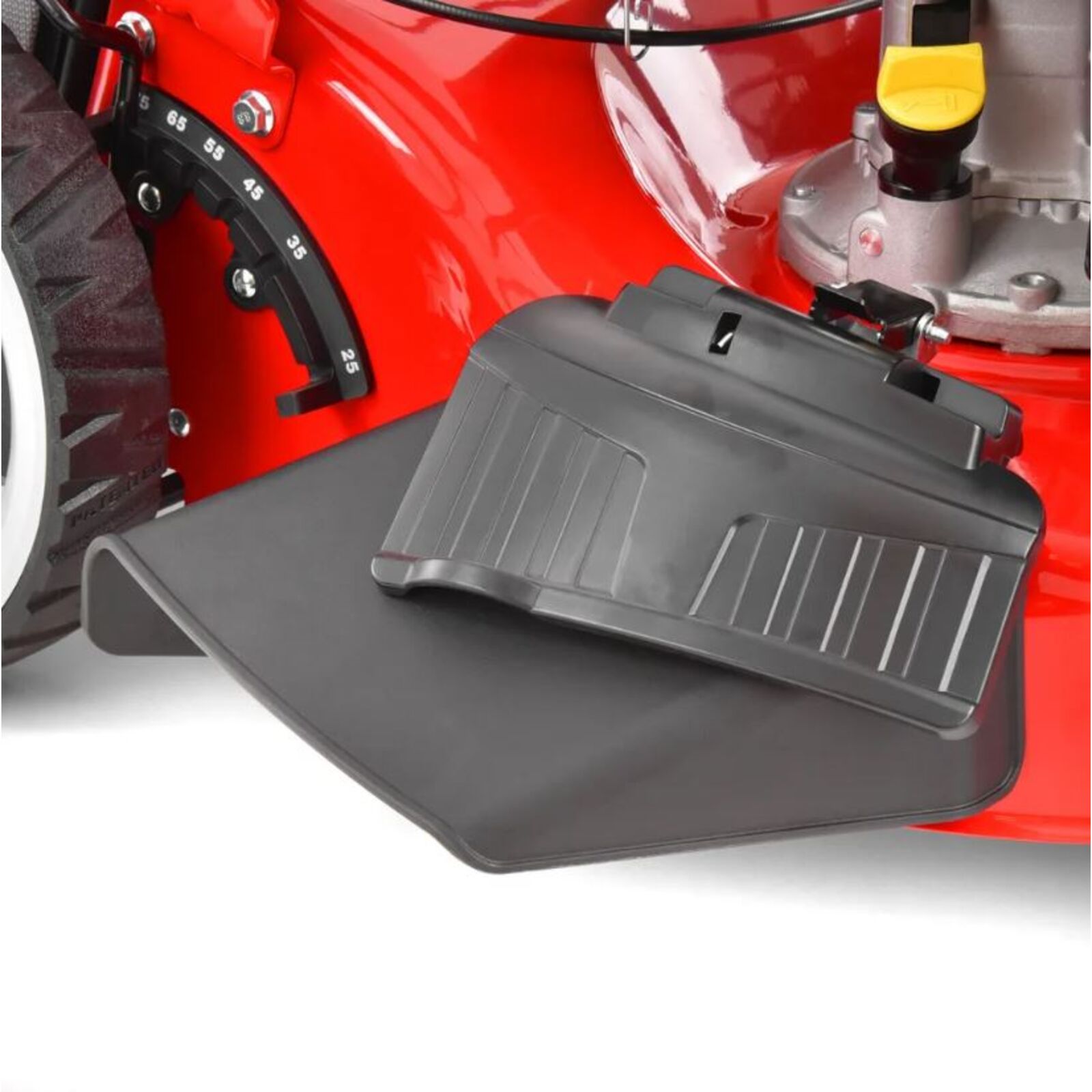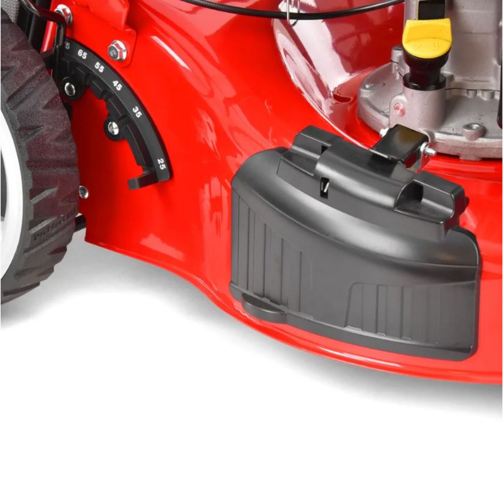 A kés munkaszélessége 460 mm, a vágási magasságot a hátsó kerekeknél egy kar segítségével lehet állítani, az első kereket pedig a megfelelő nyílásban kell rögzíteni, ez a magasság 25 és 75 mm közötti tartományban állítható. A kerekek csapágyazottak. Normál üzemmódban a fűnyíró a füvet 60 literes textil kosárba gyűjti. A kosáron található egy aerodinamikus csappantyú, ami jelzi a telítettségét.