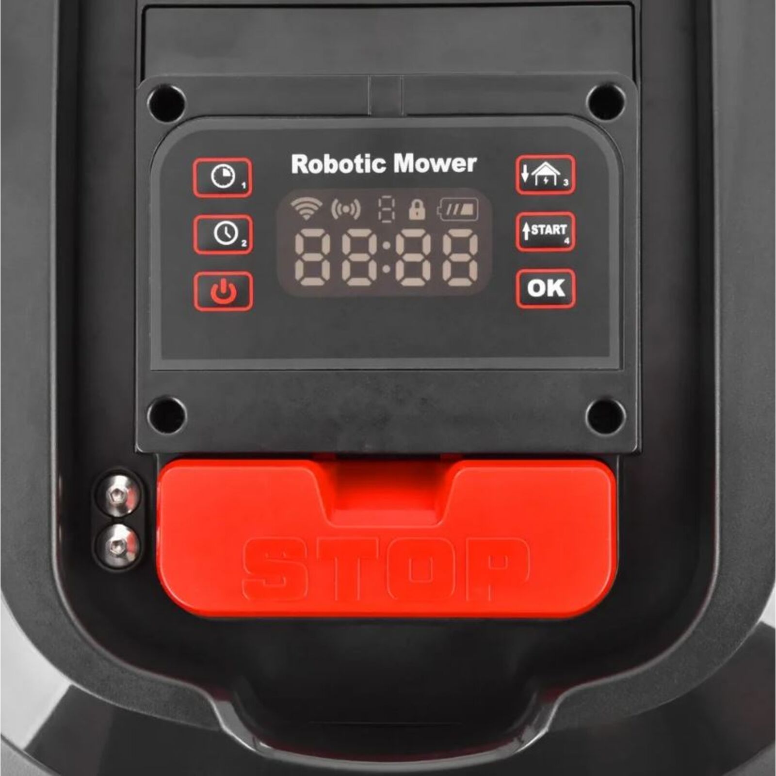A fűnyírót PIN kód védi a lopás ellen. A tudta nélkül a fűnyírót nem lehet elindítani, így a fűnyíró a tolvajok számára használhatatlan. A fűnyíró alatt teljesen elrejtett fej három pengével forog, ami veszélyes lehet a fűnyíró felemelésekor vagy felborulásakor. Ezért a gép érzékelőkkel van felszerelve, amelyek biztosítják, hogy a kések azonnal leálljanak, amikor a fűnyírót felemeli. Egyéb előre nem látható helyzetekre a fűnyíró felső burkolatán egy nagy gombbal van felszerelve, amely szintén bármikor azonnal leállítható. A vágási magasság 20-60 mm között állítható.