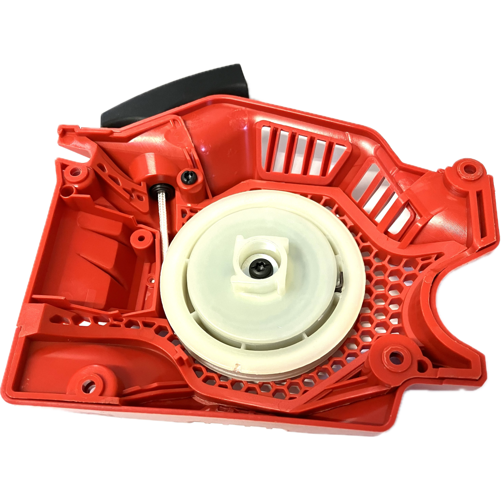 A HECHT 945 benzines láncfűrészhez való gyári, komplett berántó egység. Ideális cserealkatrész, ha a meglévő indító szerkezet megsérült vagy elhasználódott.