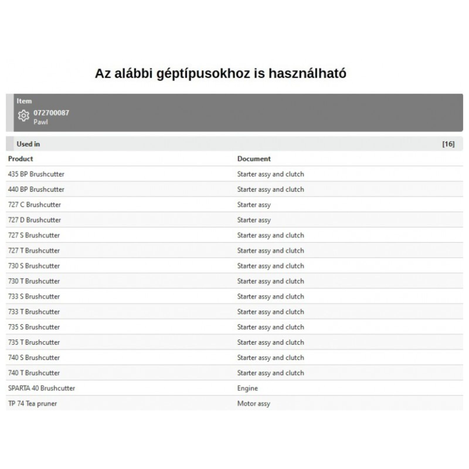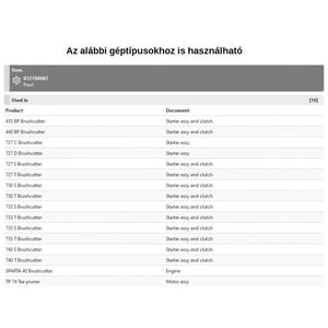 Indító fül 433 BP, 440 BP, 727, 730, 733, 735, 740, PPX 270, Sparta 40