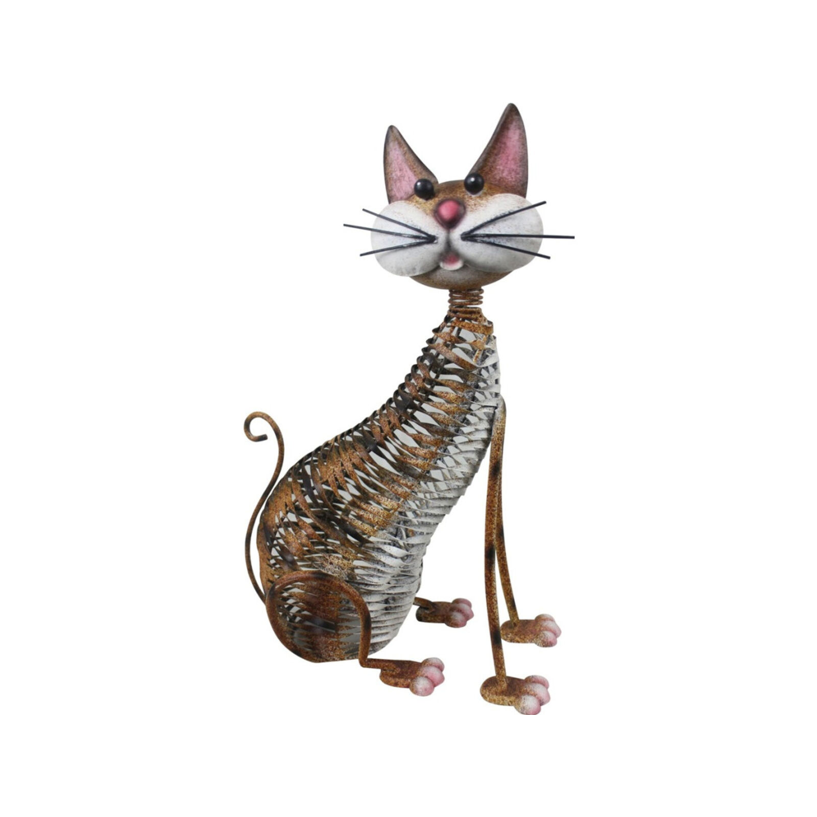 A dekoratív MAGICHOME egyedi és ízléses kiegészítője a belső és külső tereknek. A 30,5 × 16 × 40,5 cm méreteivel különleges dekorációs elemként tűnik ki, amely stílusos és játékos jelleget kölcsönöz a térnek. A tartós fémből készült macska részletes testszerkezetű, finom fémkivágásokkal, amelyek a szőrzetet utánozzák és légies megjelenést kölcsönöznek neki. nagy kerek szemei, jellegzetes bajusza, rózsaszín orra és göndör farka imádnivaló és barátságos karaktert kölcsönöz neki. Ez a dekoráció stabil és időjárásálló, így kertben, teraszon, erkélyen vagy beltérben is elhelyezhető. Tökéletesen illeszkedik a rusztikus, vintage vagy ipari környezetbe.