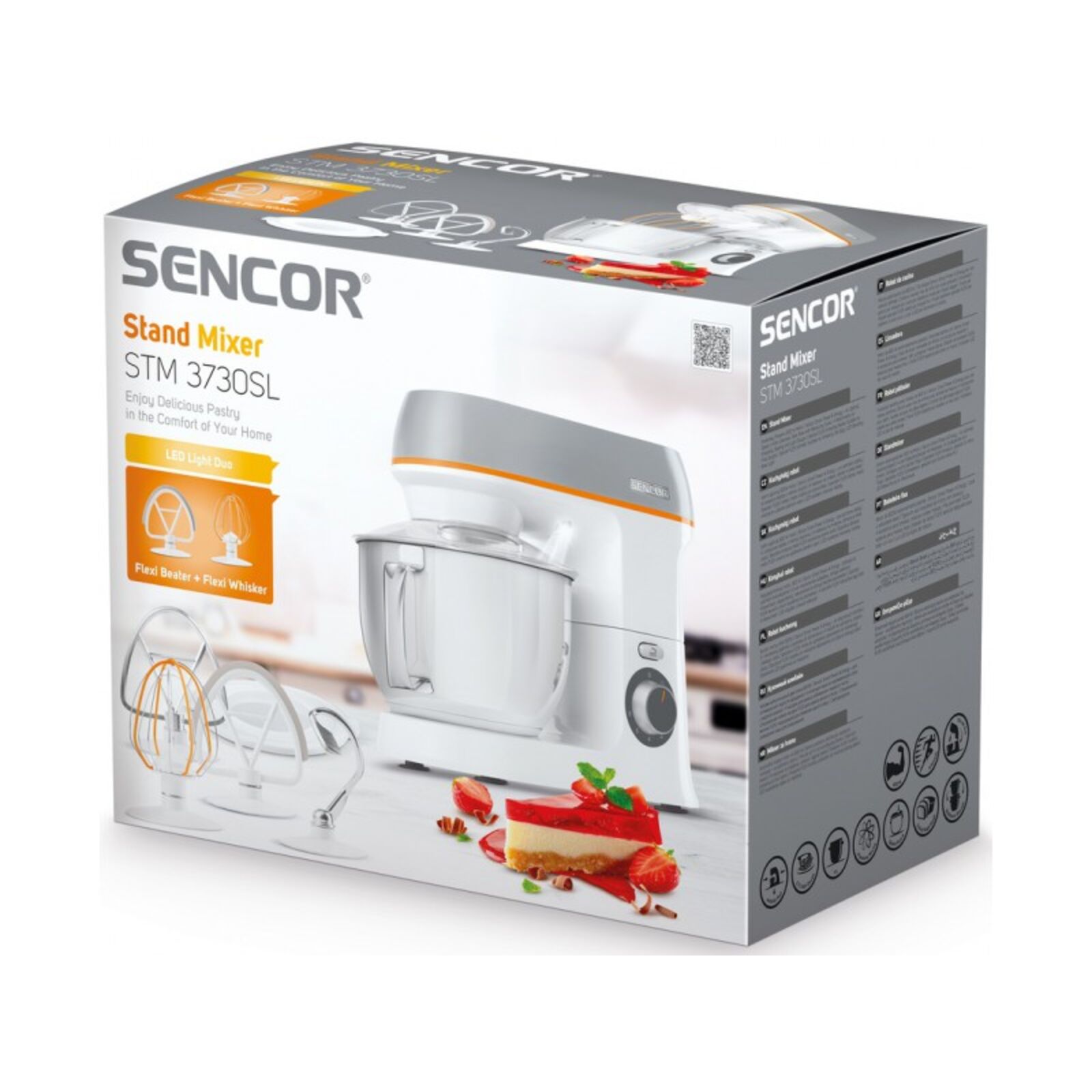 Nagyteljesítményű motor, 1000 W Sencor Smart Power & Energy – biztosítja az optimális fordulatszámot Sebességfokozatok száma: 6 4 l-es rozsdamentes acél edény, térfogat skálával 4 keverőszár: dagasztáshoz, habveréshez és könnyű tészták keveréséhez Speciális FLEXI keverő a finom tésztákhoz és krémekhez A speciális FLEXI habverővel egy tojás is kikeverhető LED világítás a keverő edénynél