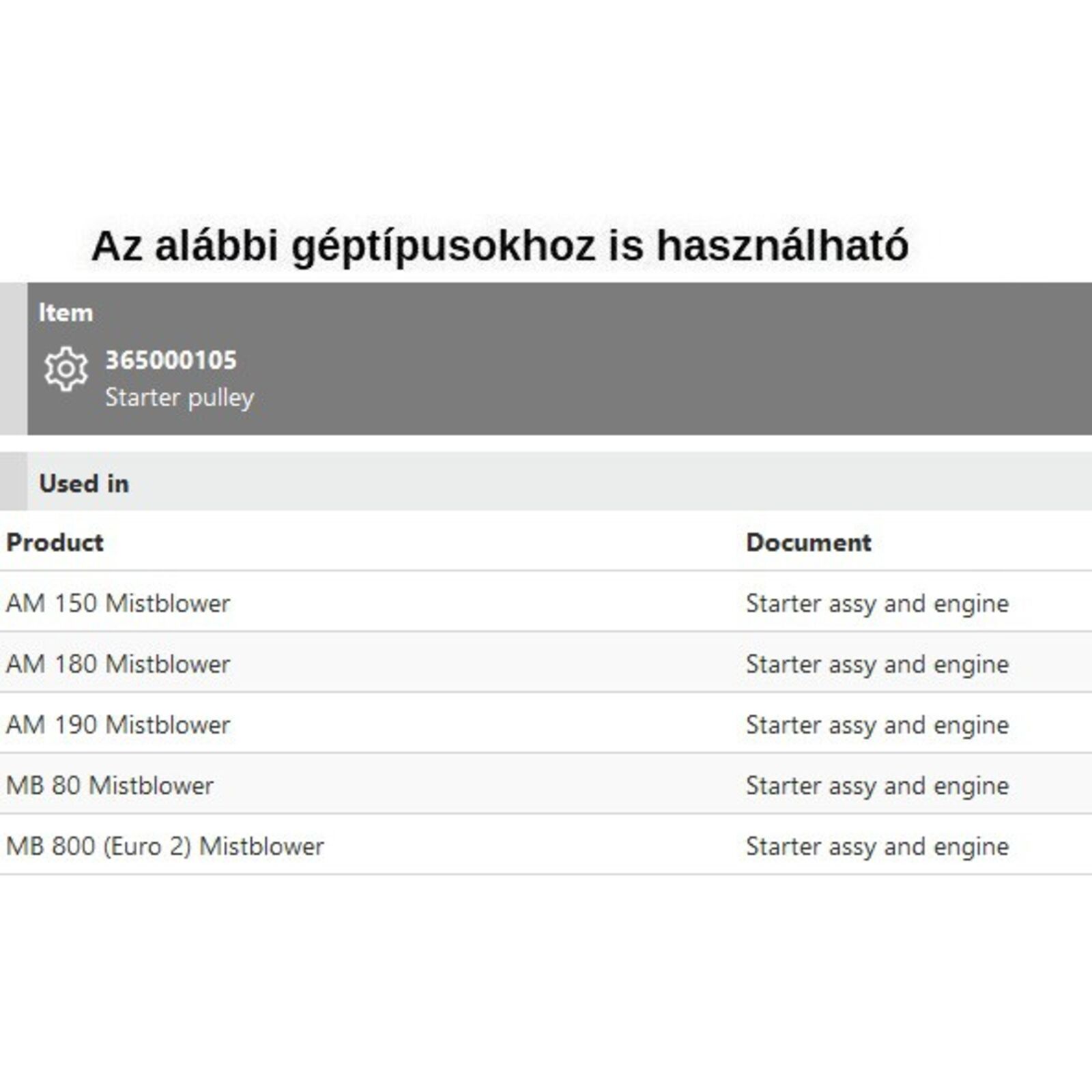 Tipusok: AM 150, AM 180, AM 190, MB 80, MB 800