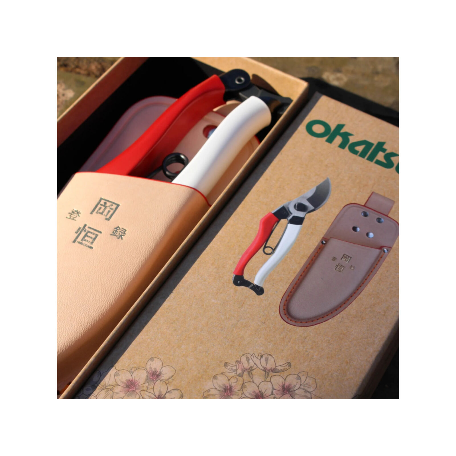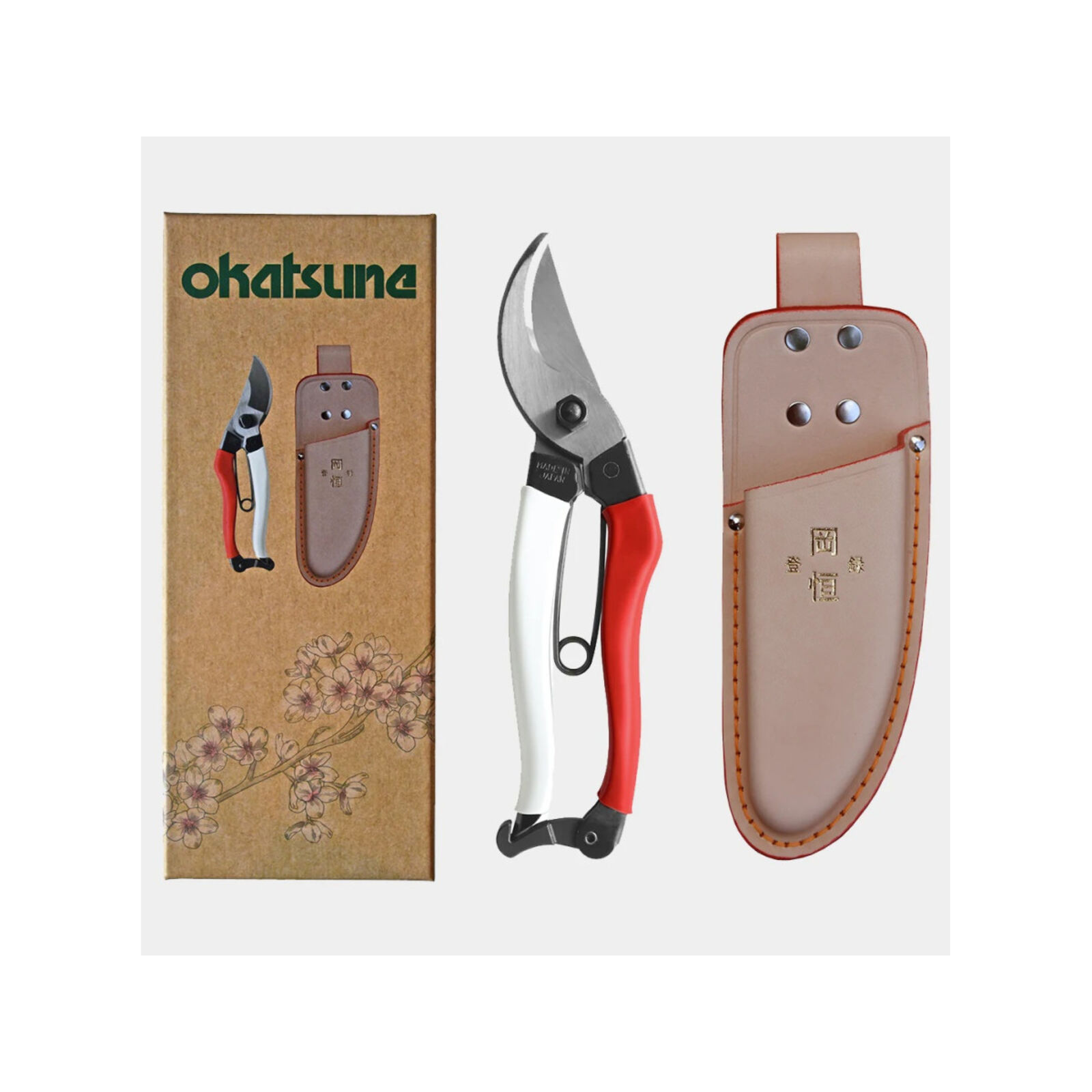 Luxus ajándékkészlet Okatsune 103 metszőollóval, Okatsune 108 tokkal. Az Okatsune 103 a legnépszerűbb metszőolló a kínálatban. Ennek a borotvaéles metszőollónak a pengéi a legfinomabb japán acélból kovácsoltak (ugyanabból az acélból, amelyből a szamurájok katana kardja is készül), és lehetővé teszik, hogy könnyedén átvágja az akár 25 mm vastag ágakat is, például cserjéket, rózsákat, gyümölcsfákat és kúszónövényeket. Az övhurokkal ellátott Het 108 tok lehetővé teszi, hogy biztonságosan magával vigye metszőollóját, ha nem használja, de kéznél szeretné tartani. A világos bőr idővel és használattal fakul, és rugalmasabbá válik.