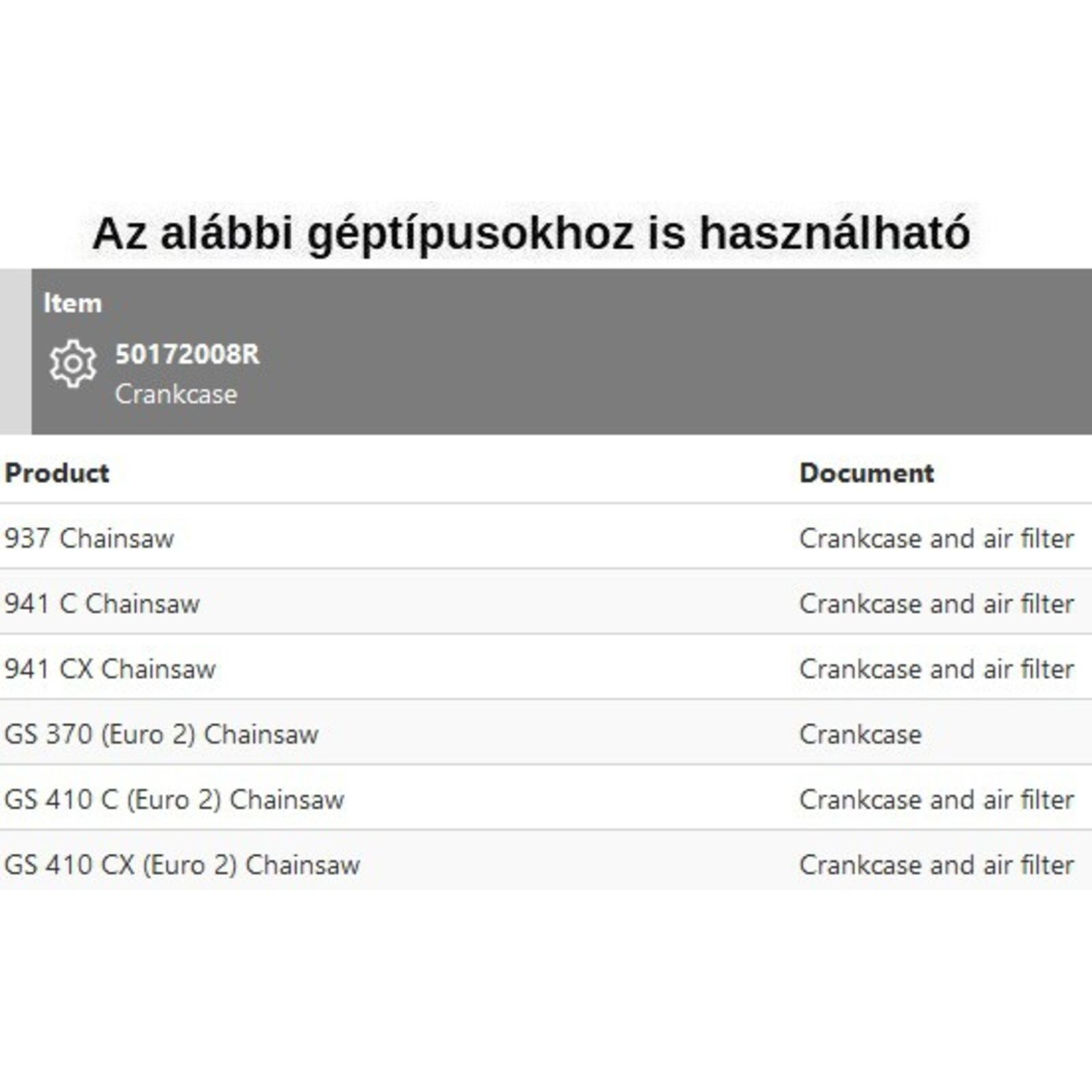 Olajtartály forgattyúsház 937, 941C-CX, GS 370, GS 410C-CX