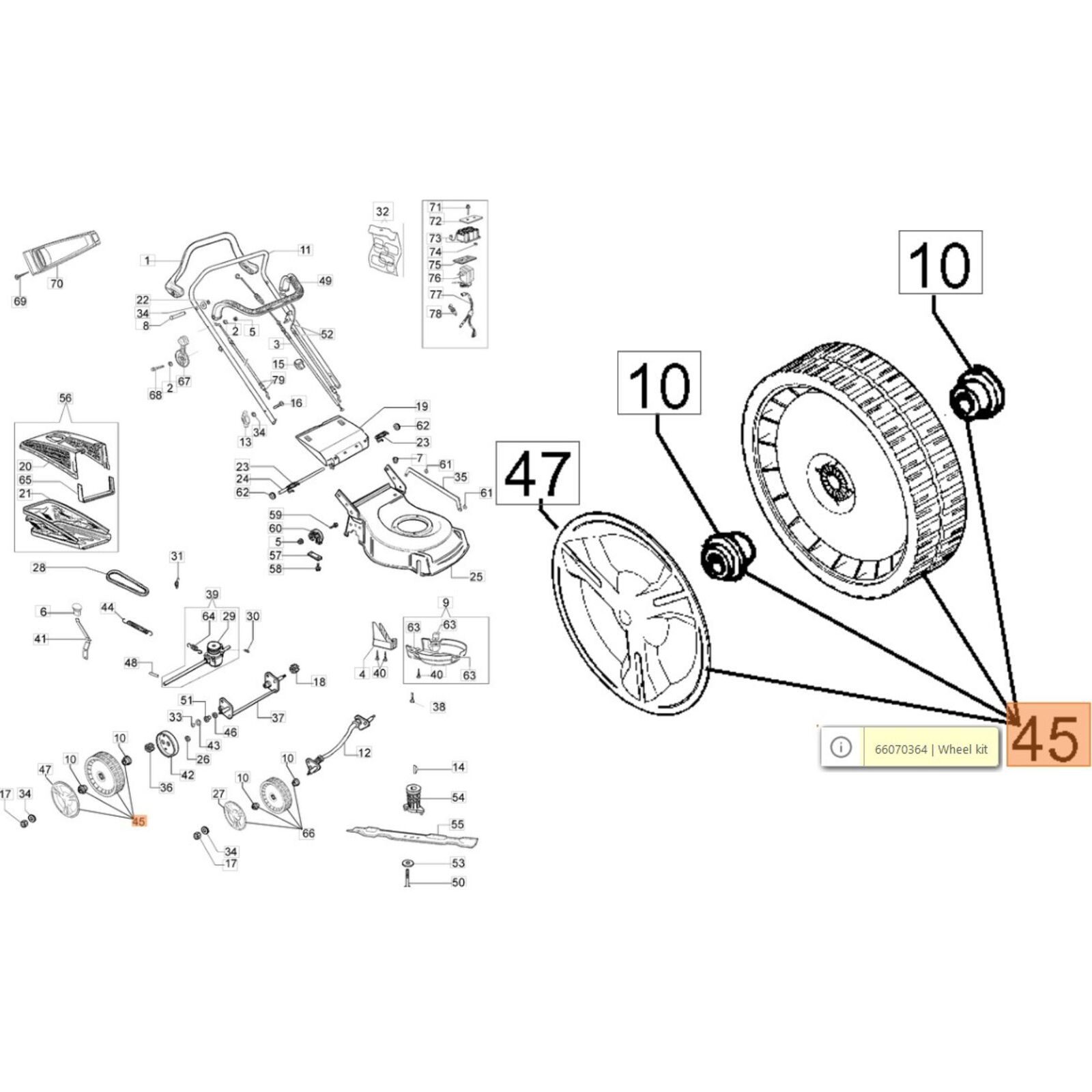 Önjáró kerék csapágyas - G 48 / G 53 - 205 mm