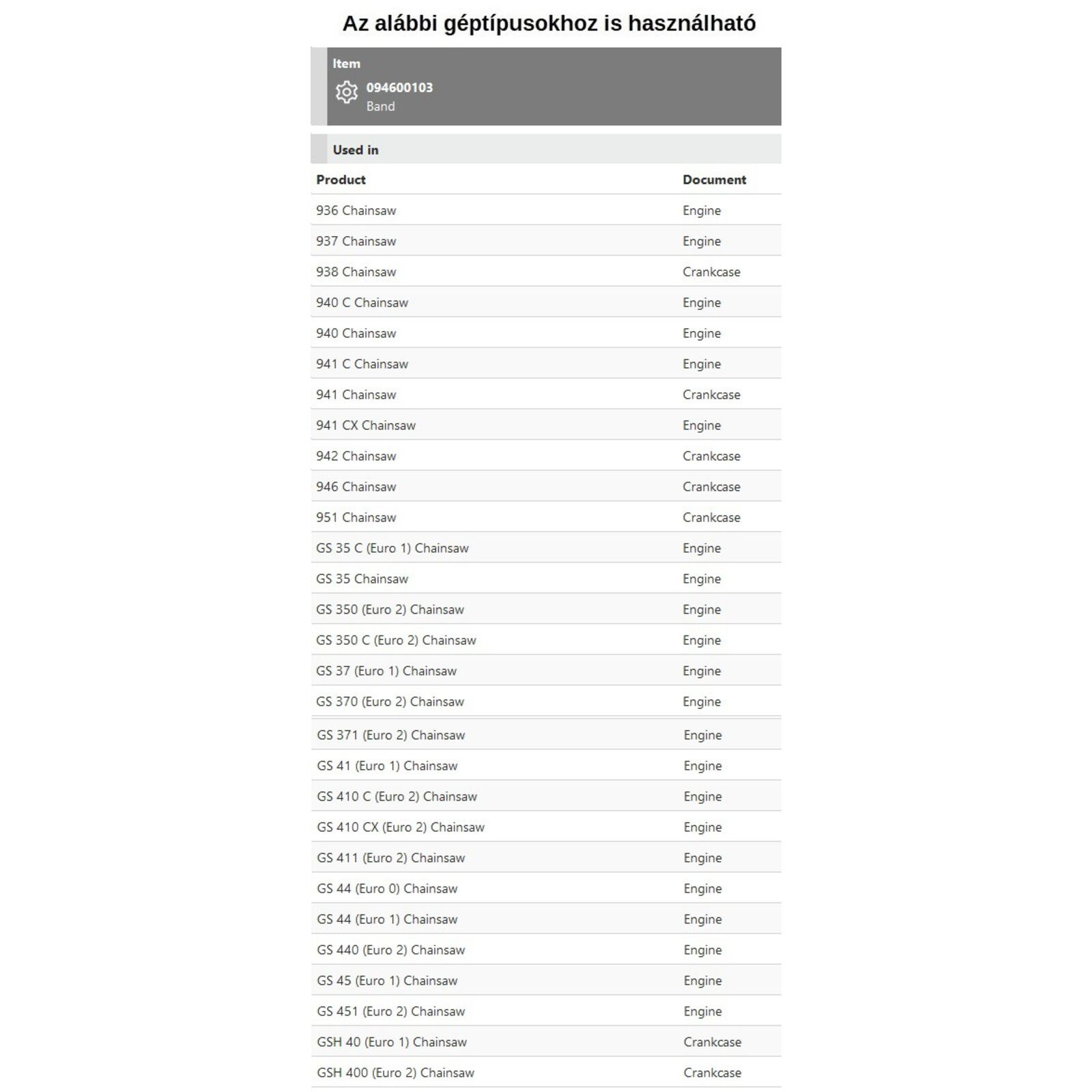 Típusok: 936, 937, 940 C, 941, 941 C, 941 CX, 942, 946, 951 GS 35, GS 35 C, GS 350, GS 350 C, GS 37, GS 370, GS 371, GS 41, GS 410 C, GS 410 CX, , GS 411, GS 44, GS 440, GS 45, GS 451, GSH 40, GSH 400