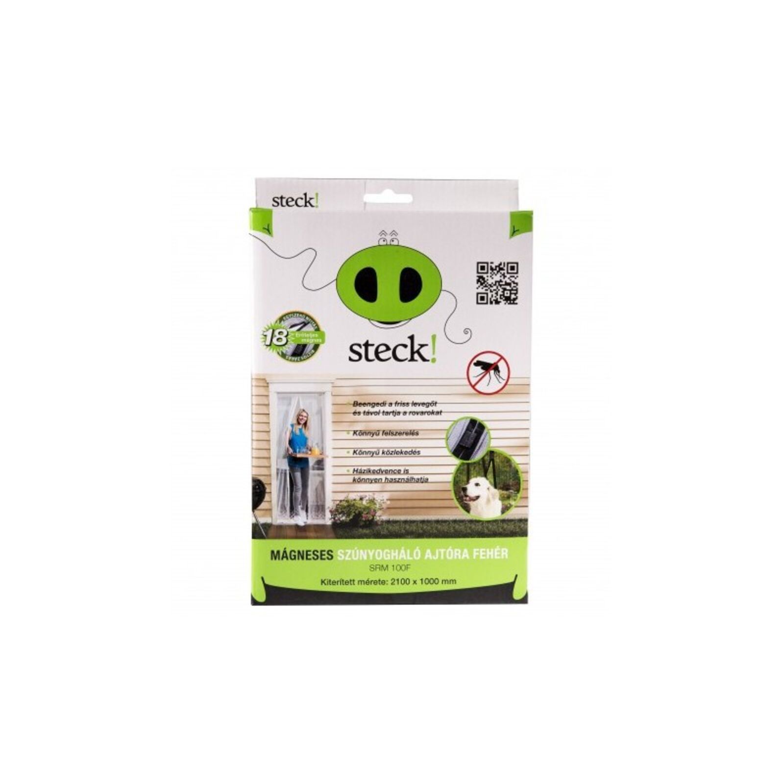 Rovarháló ajtóra mágnesen 210x100 cm SRM 100 fehér 18 erős mágnes