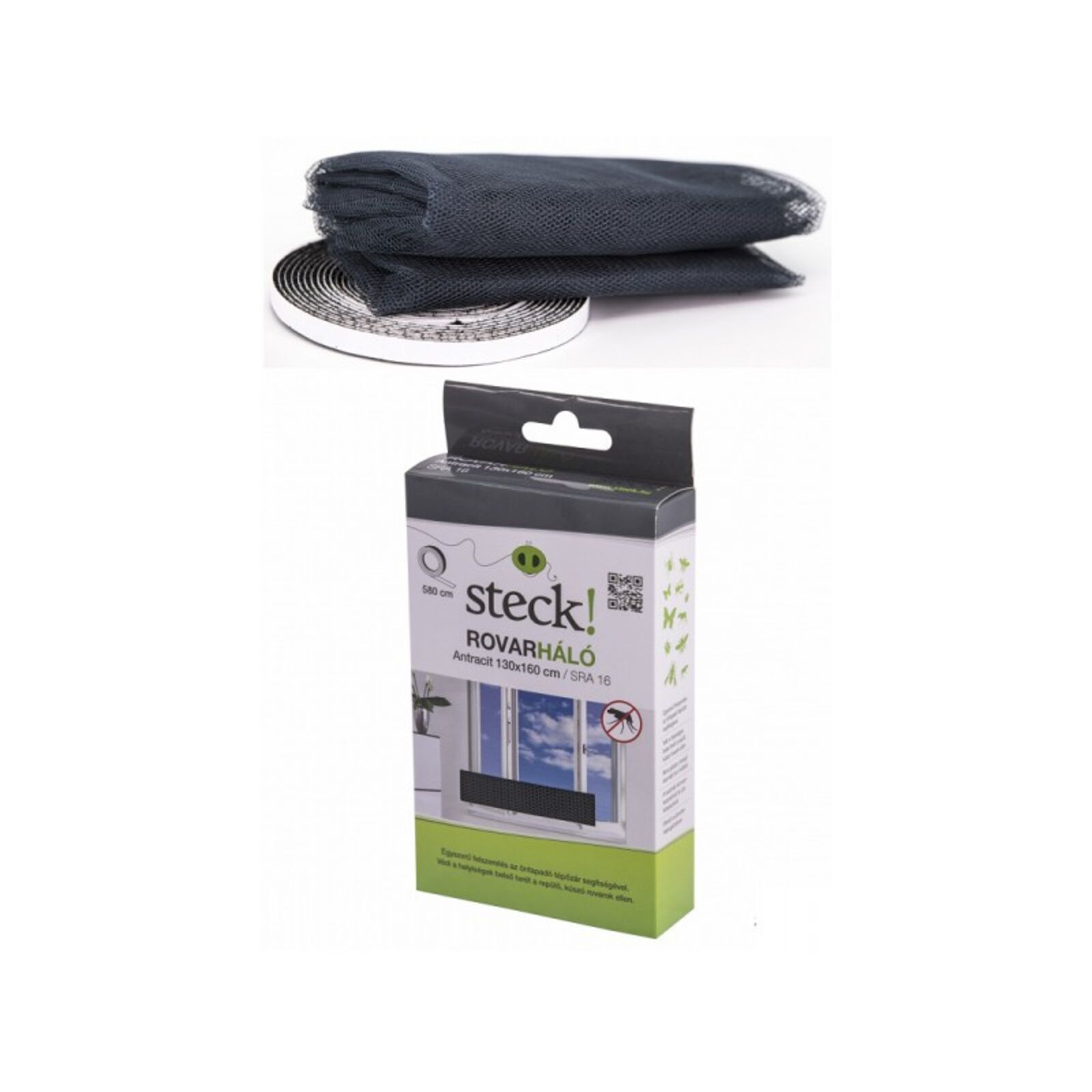 Rovarháló öntapadós tépőzárral 150x180 cm Antracid Steck SRA 18