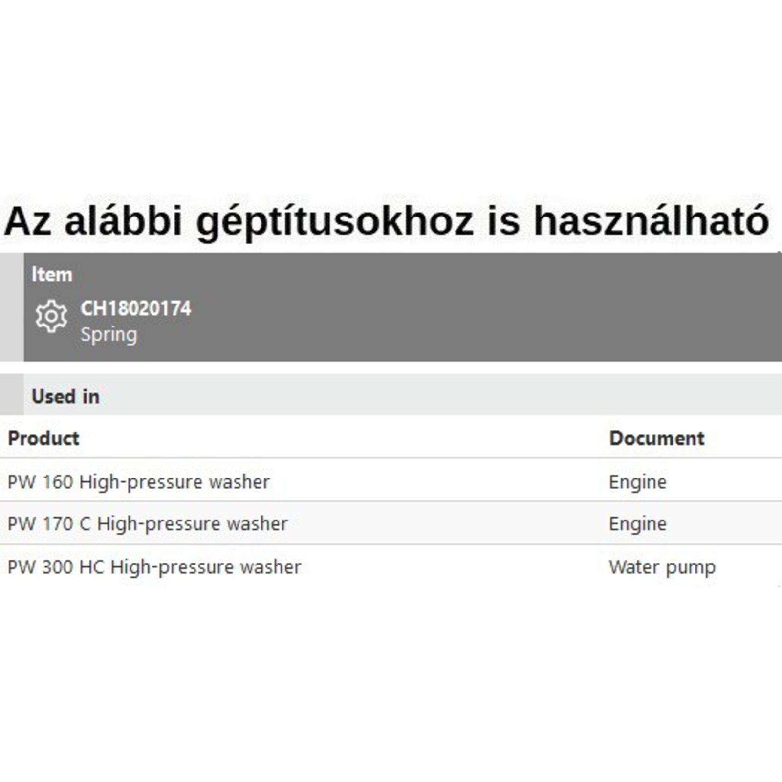 Rugó PW 160, PW 170C, PW 300HC