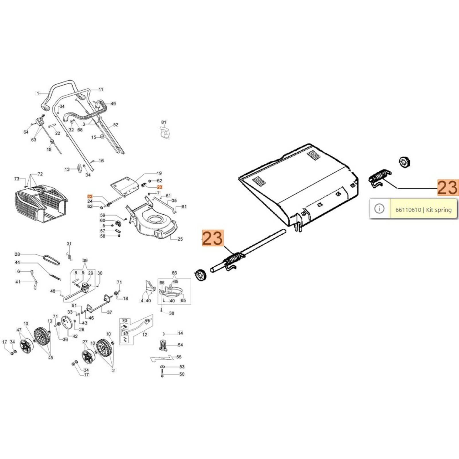Rugó ajtó feszítő szett kit jobb-bal 66110017+66110018, G Series, fűgyűjtős