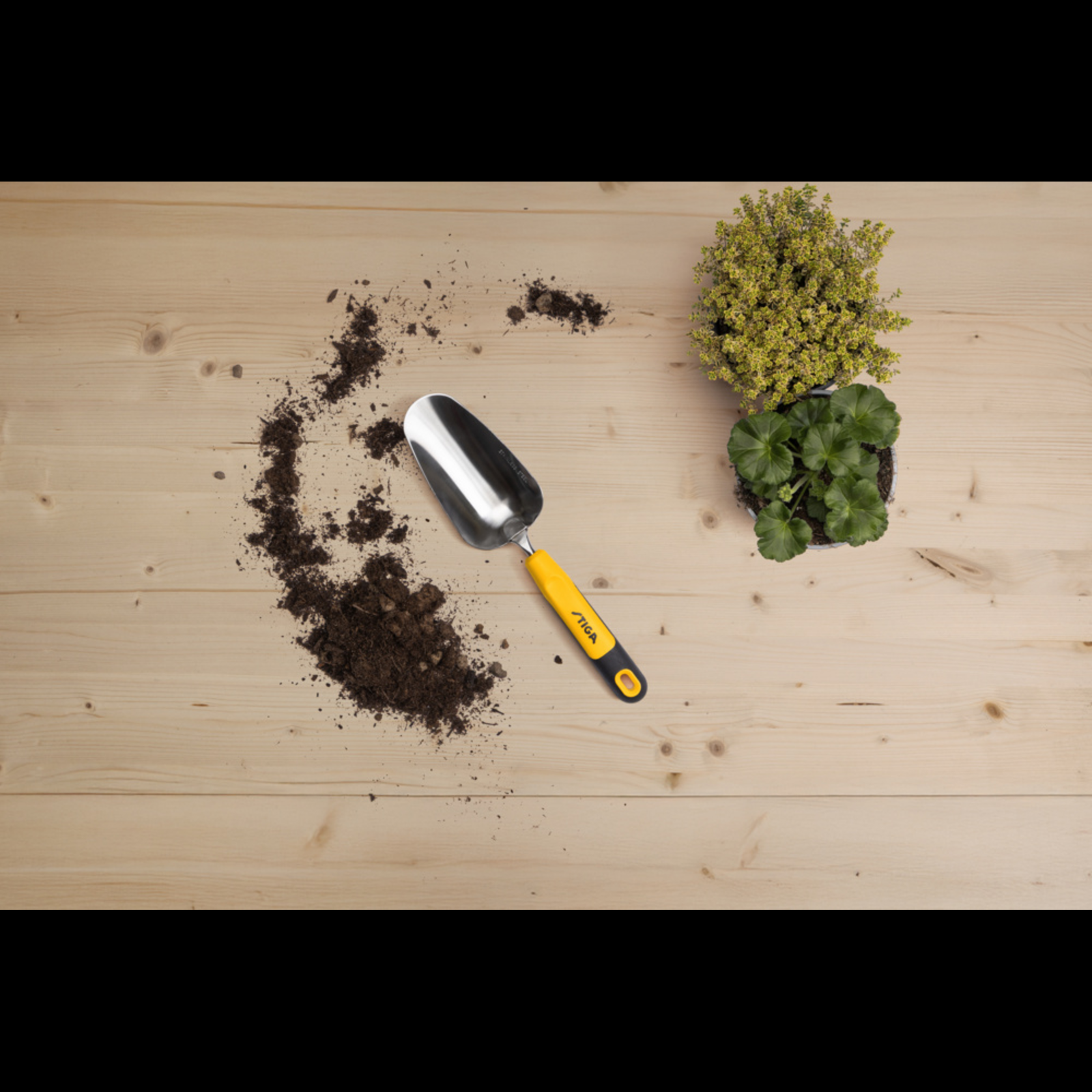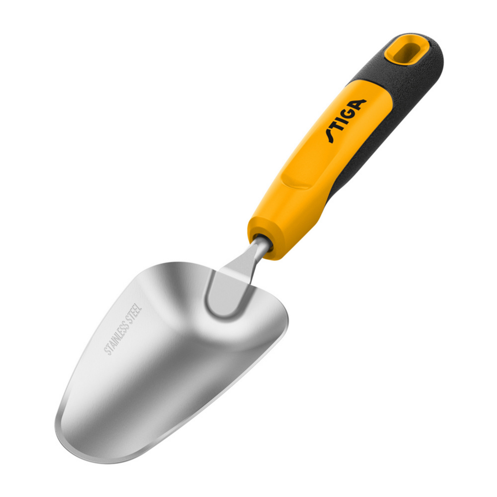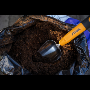 Ez a STIGA palántázó lapát ideális magok vetéséhez és palánták átültetéséhez. Hegyes, rozsdamentes acél lapátjának köszönhetően a száraz talaj ásása gyerekjáték, míg sárga színe miatt a lapát könnyen észrevehető a fűben. A markolat extra fogása maximális kényelmet biztosít.