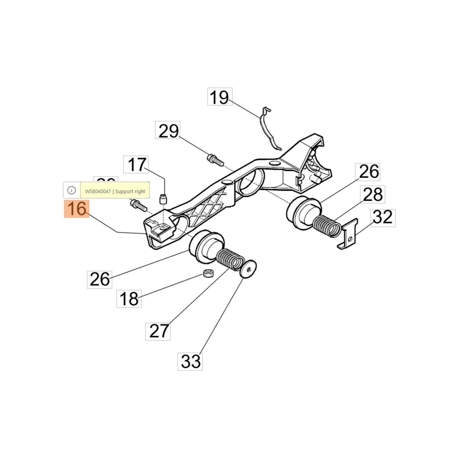 Tartó gumibakhoz jobb HC 246-247 P, HC 260-265-275-280 XP