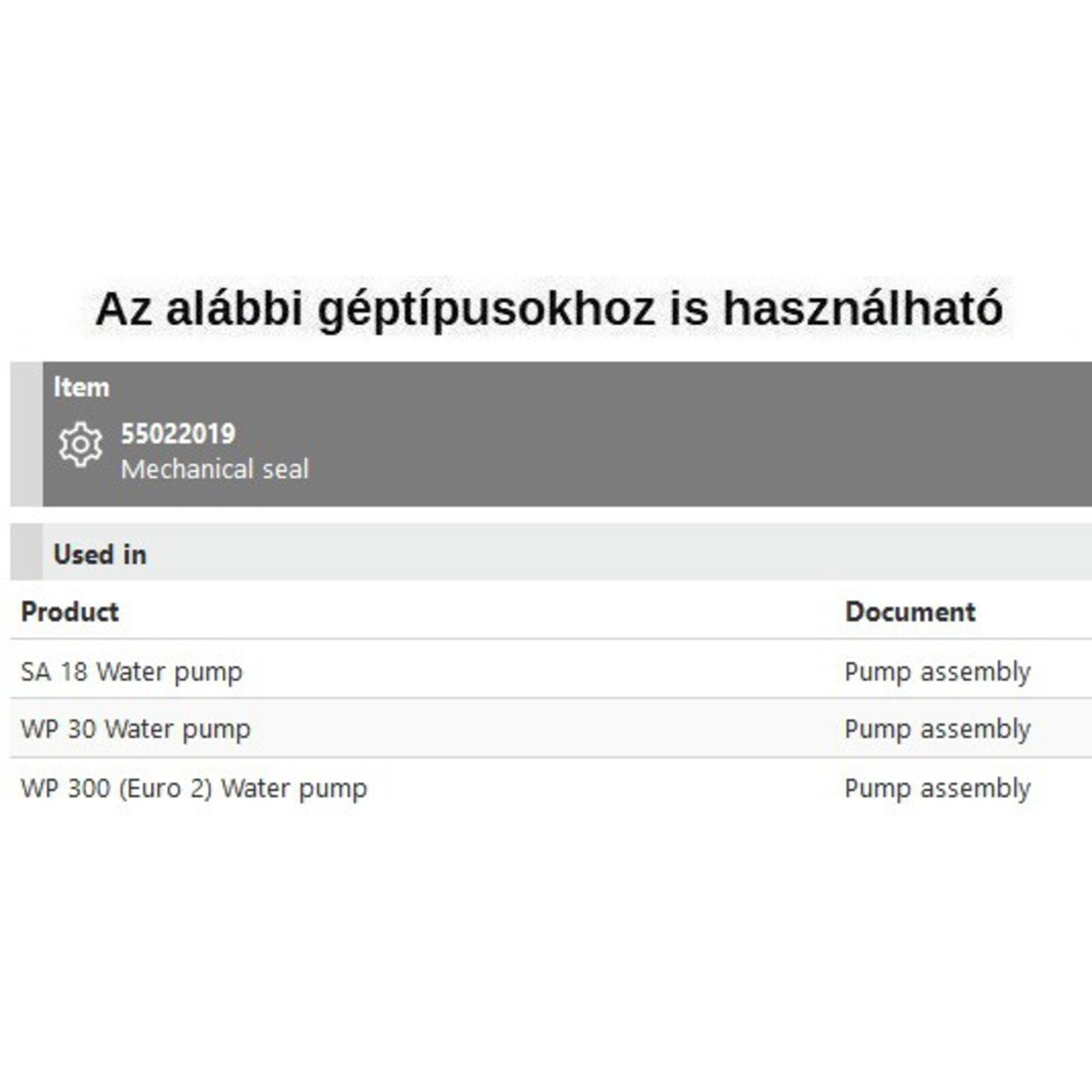 Tömszelence, csúszógyűrűs tömítés SA 18, WP 30, WP 300,