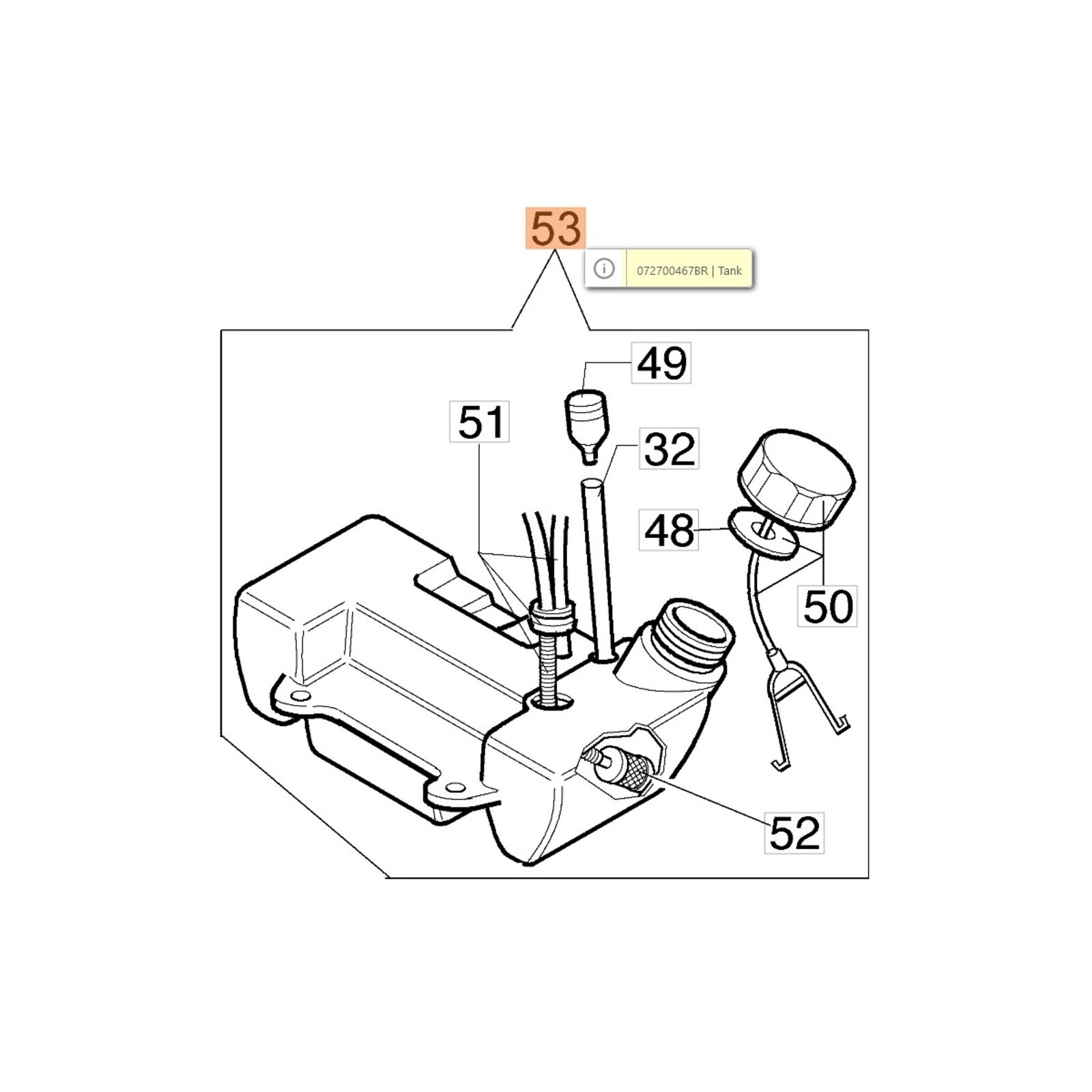 Komplett üzemanyag tank. Tanksapkával, benzinszűrővel, tömítéssel. OLEO MAC 730,740 bozótvágókhoz.