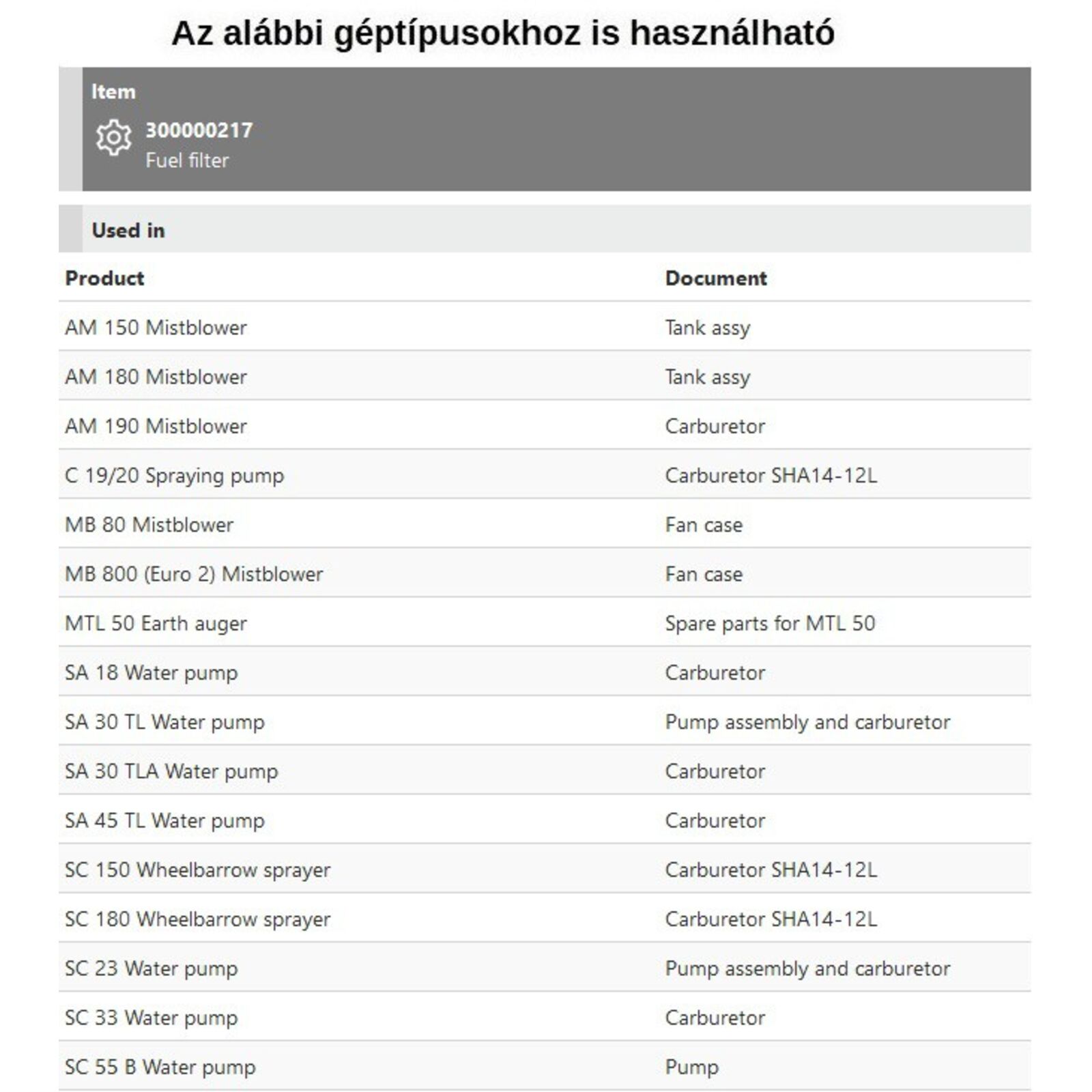 Tipusok: AM 150,180,190, MB 80, MB 800, MTL 50, SA18