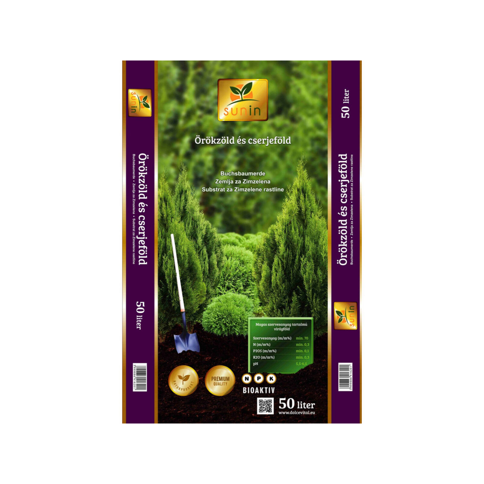 Virágföld örökzöld és cserje Prémium 50l Sunin 54db/raklap