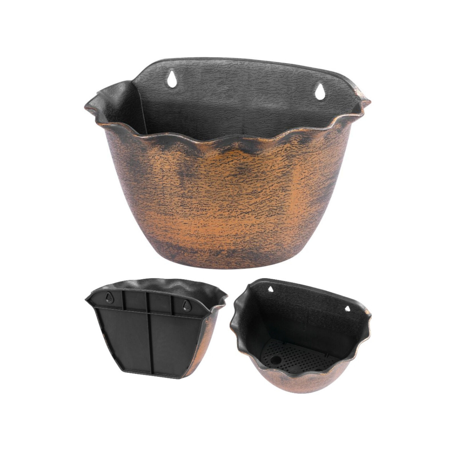 A fémhatású Wave ültetőtartó egész évben használható kül- és beltéren, erkélyen, teraszon vagy kertben. Kiváló minőségű, könnyen mosható anyagból készült, fagy- és időjárásálló. Méretek: 26x18 cm. Szín: arany.