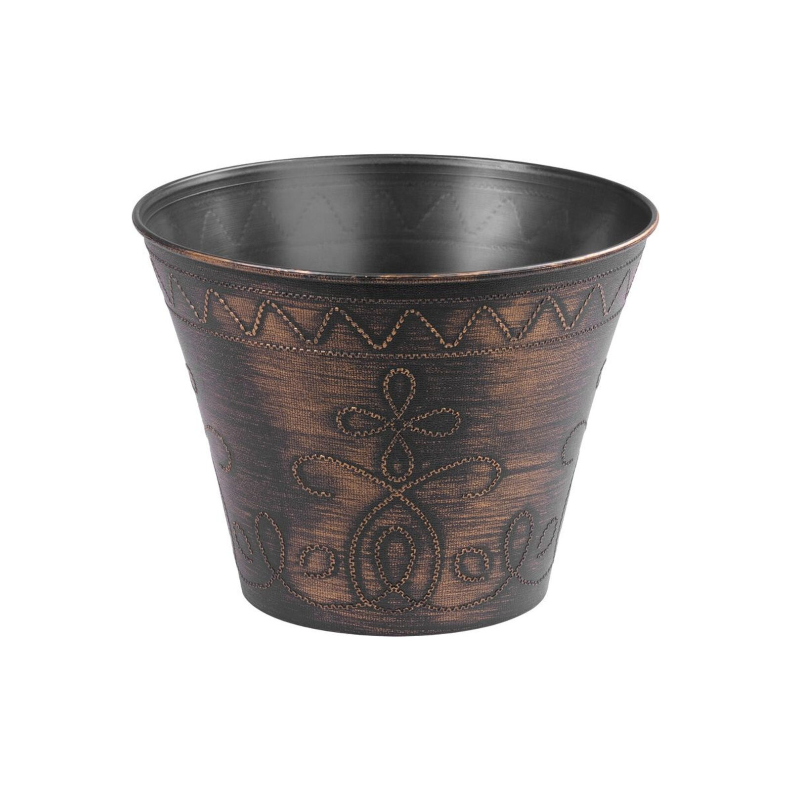 A fémes hatású virágtartó egész évben használható kül- és beltéri használatra, erkélyre, teraszra vagy kertbe. Kiváló minőségű, könnyen mosható anyagból készült, fagy- és időjárásálló. Méretek: 24,5x19,3 cm. Szín: arany.