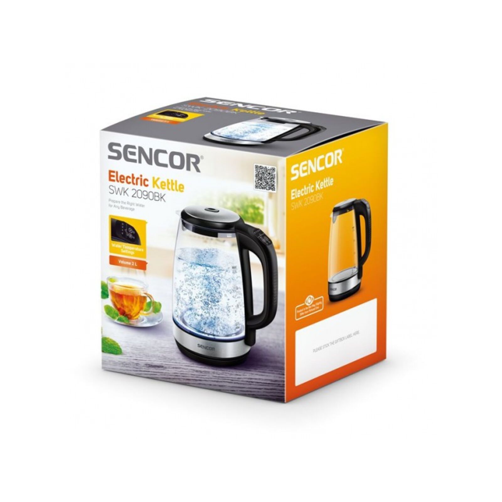 A Sencor SWK 2090BK stílusos és praktikus elektromos üveg vízforraló. A maximális kapacitása 2,0 liter és az anyagát tekintve kiváló minőségű üveg nemesacél kombináció. A vízforraló 2200 W teljesítményének köszönhetően gyorsan felmelegíti a vizet. A tökéletes ízélmény elérését az elektronikus hőmérséklet-szabályozó (50–100 °C) segíti. Az elkészült forró ital még 30 percen keresztül meleg marad, köszönhetően a hőmérsékleten tartó funkciónak. A hármas biztonsági rendszernek köszönhetően a vízforraló védve van a túlmelegedés ellen víz nélküli bekapcsolás esetén, ugyanígy automatikusan kikapcsol, ha levesszük a talpról, valamint ha eléri a forráspontot.